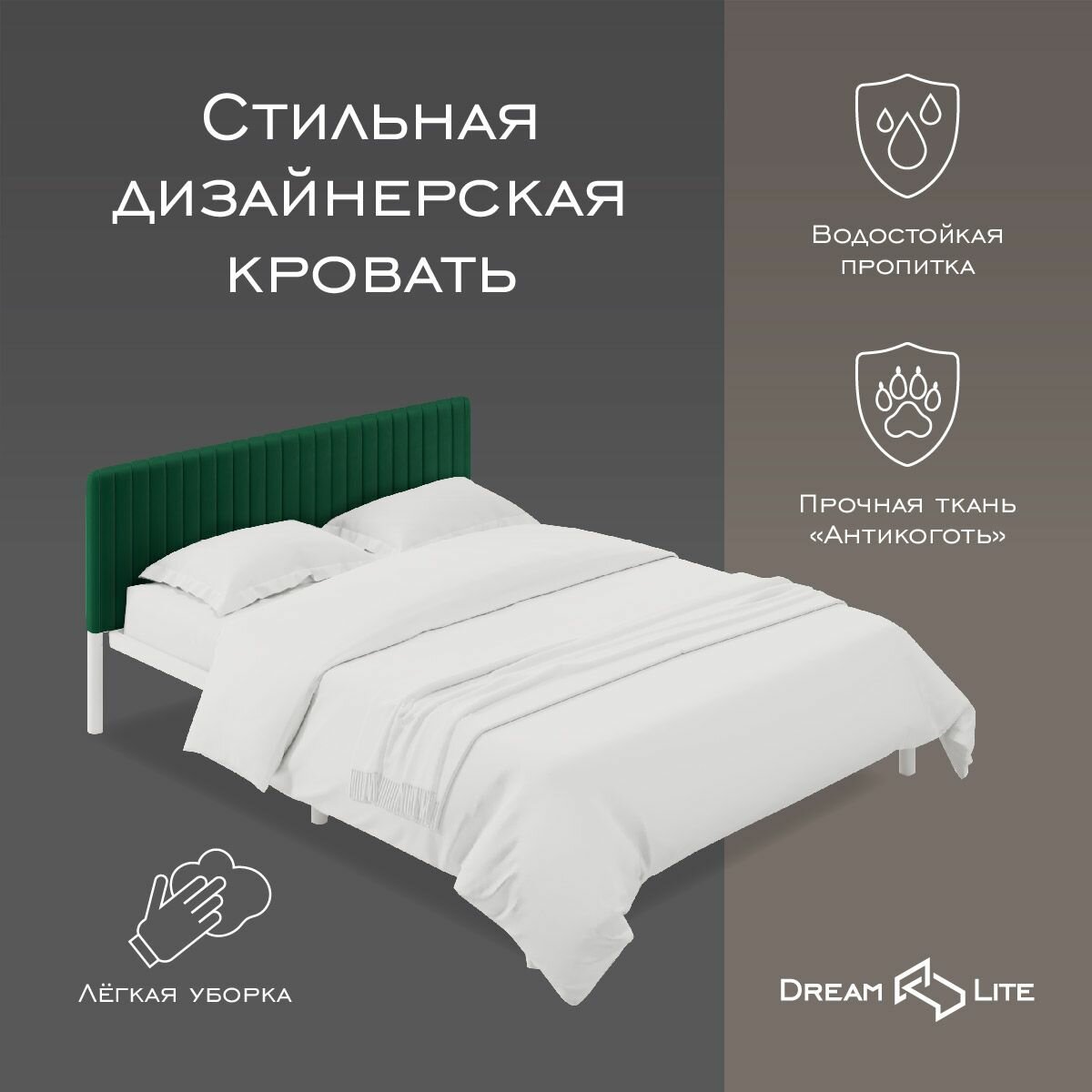Двуспальная кровать металлическая 160х200 зеленая "Гаррона" белый каркас, DreamLite