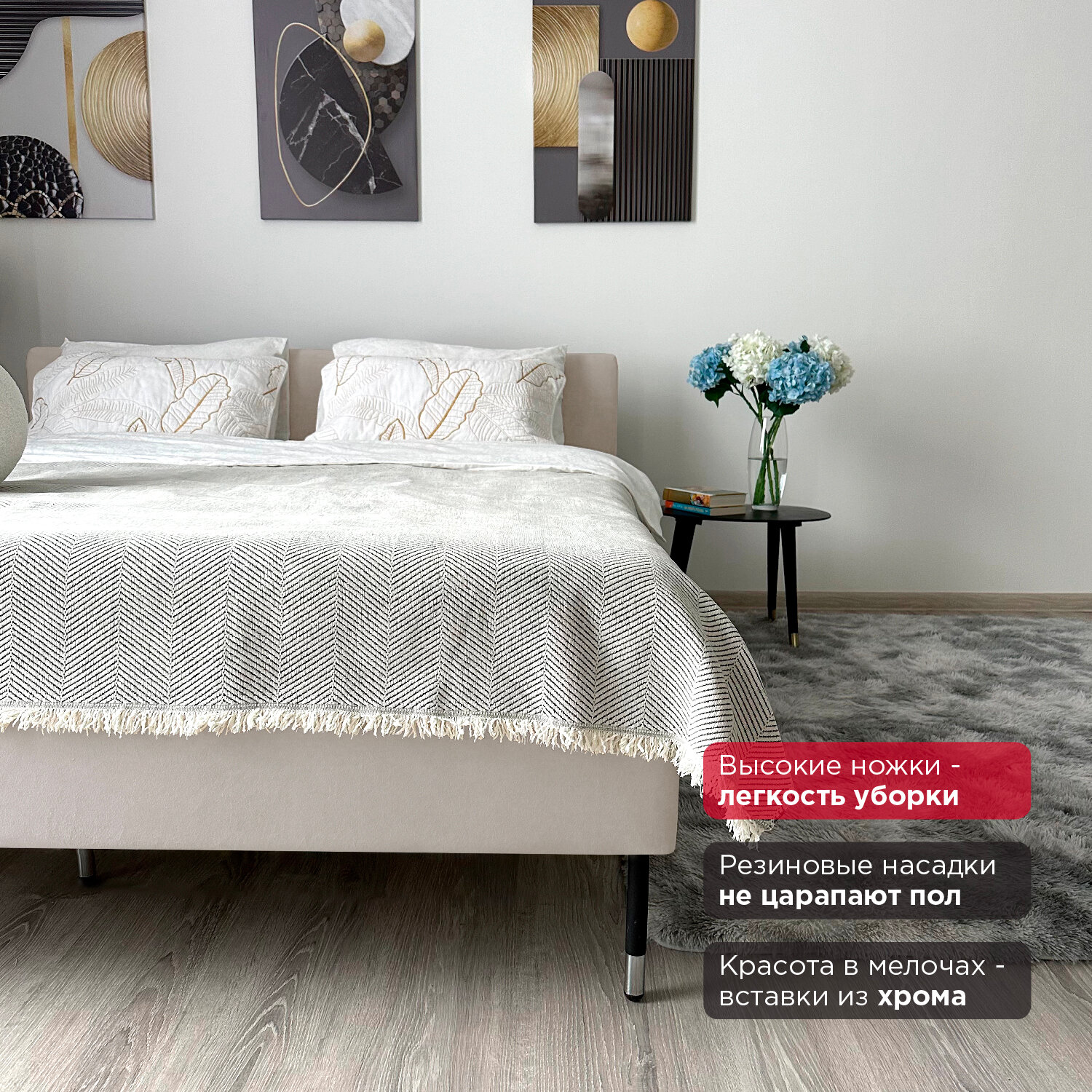 Кровать Redsofa Сити бежевый Шайн / ножки хром 140х200 с ортопедическим основанием