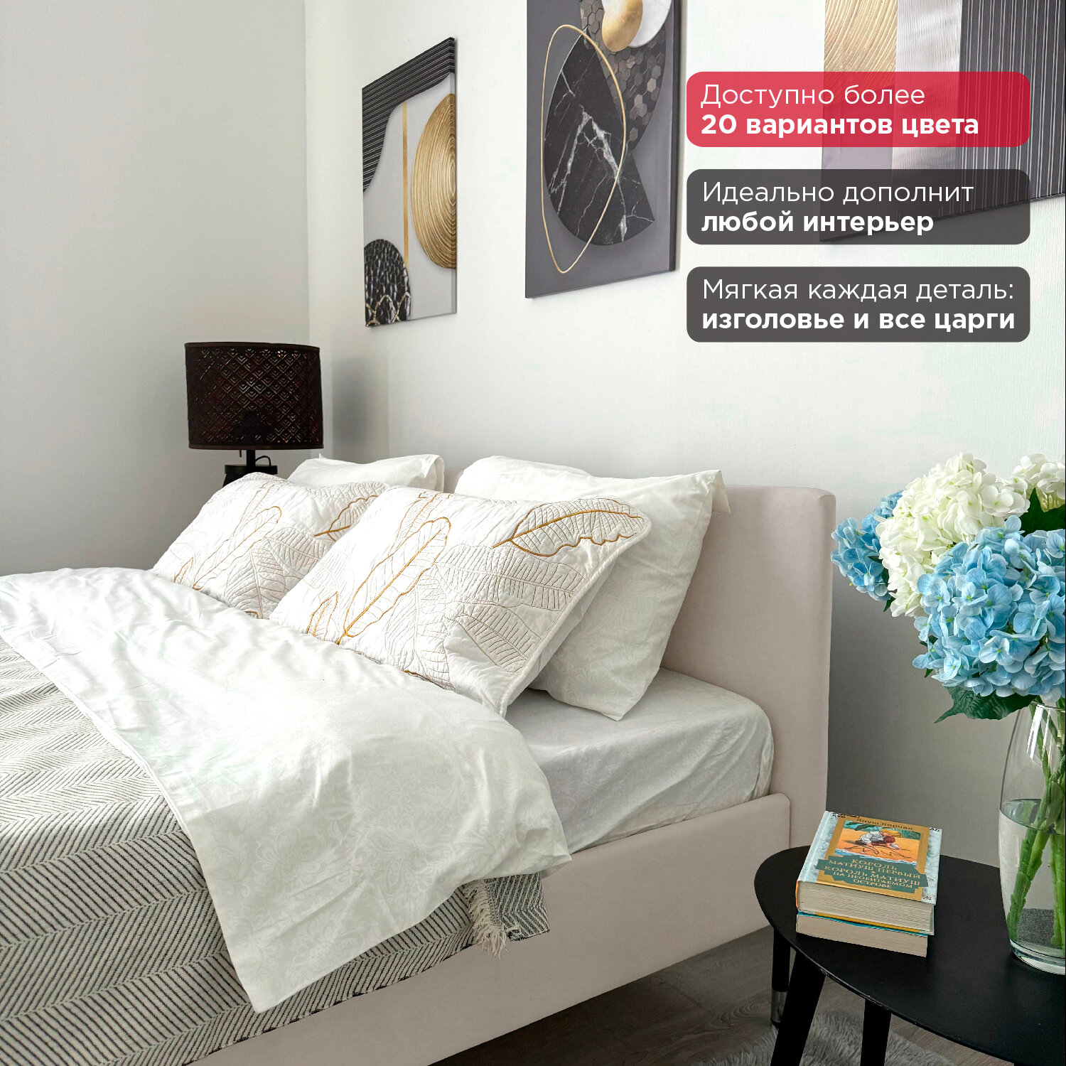 Кровать Redsofa Сити бежевый Шайн / ножки хром 160х200 с ортопедическим основанием