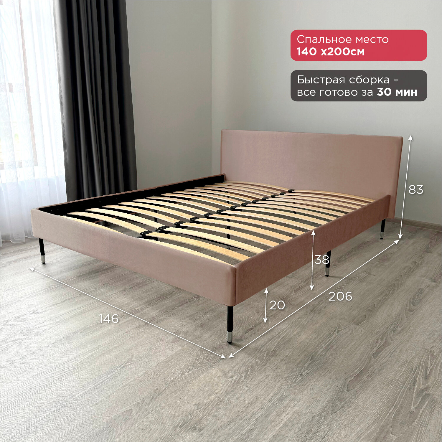 Кровать Redsofa Сити темно-бежевый Шайн / ножки хром 140х200 с ортопедическим основанием