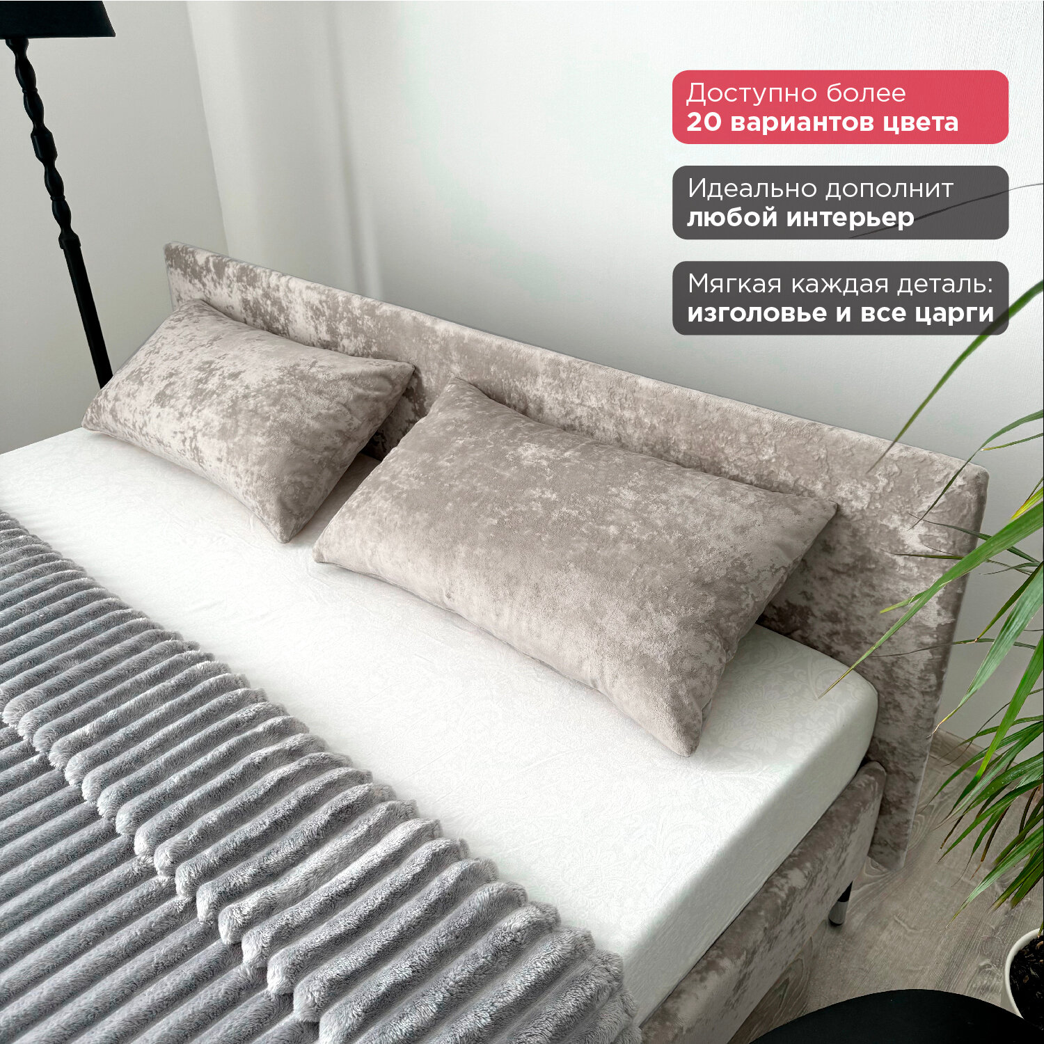 Кровать Redsofa Сити светло-серый Teddi / ножки хром 180х200 с ортопедическим основанием