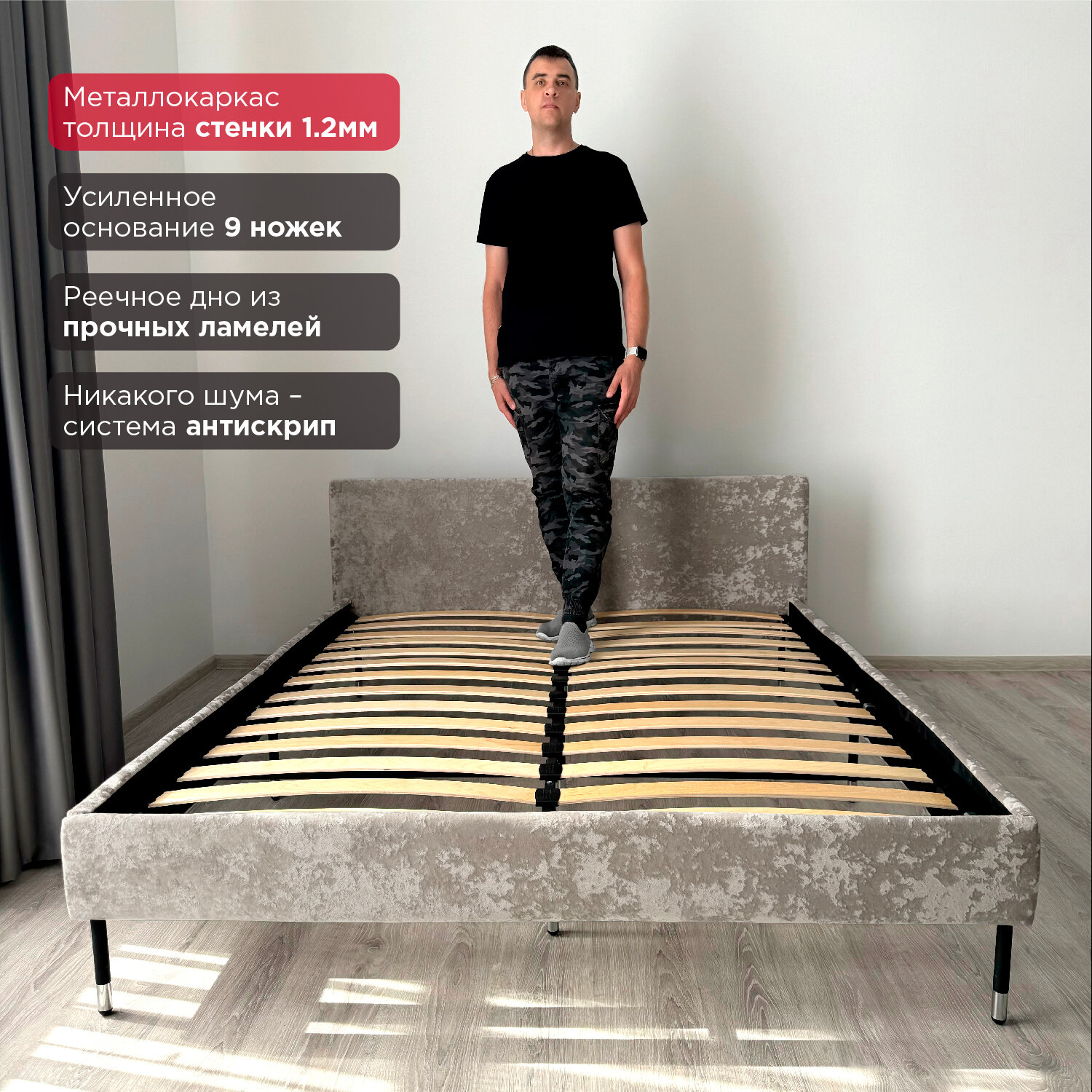 Кровать Redsofa Сити темно-бежевый Шайн / ножки хром 160х200 с ортопедическим основанием