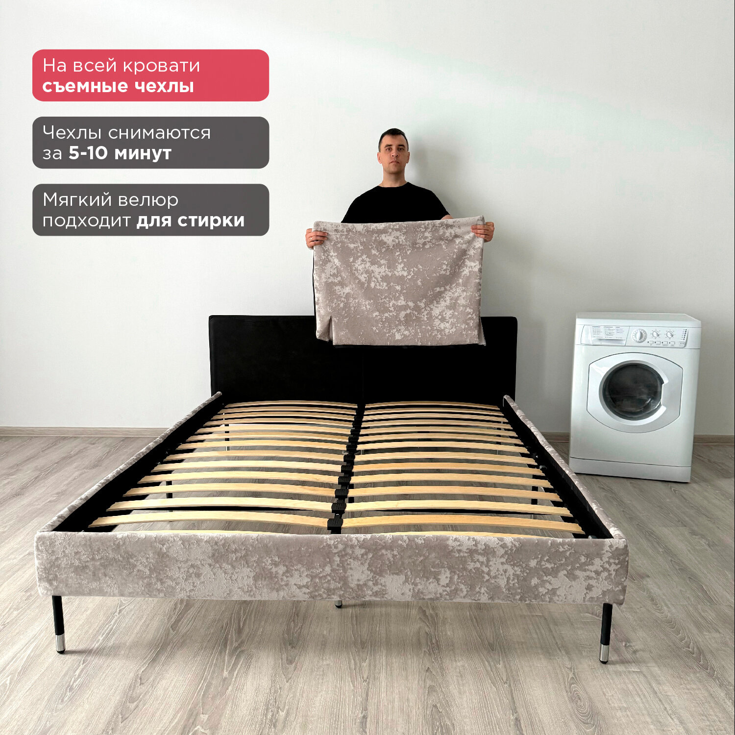 Кровать Redsofa Сити темно-бежевый Шайн / ножки хром 140х200 с ортопедическим основанием