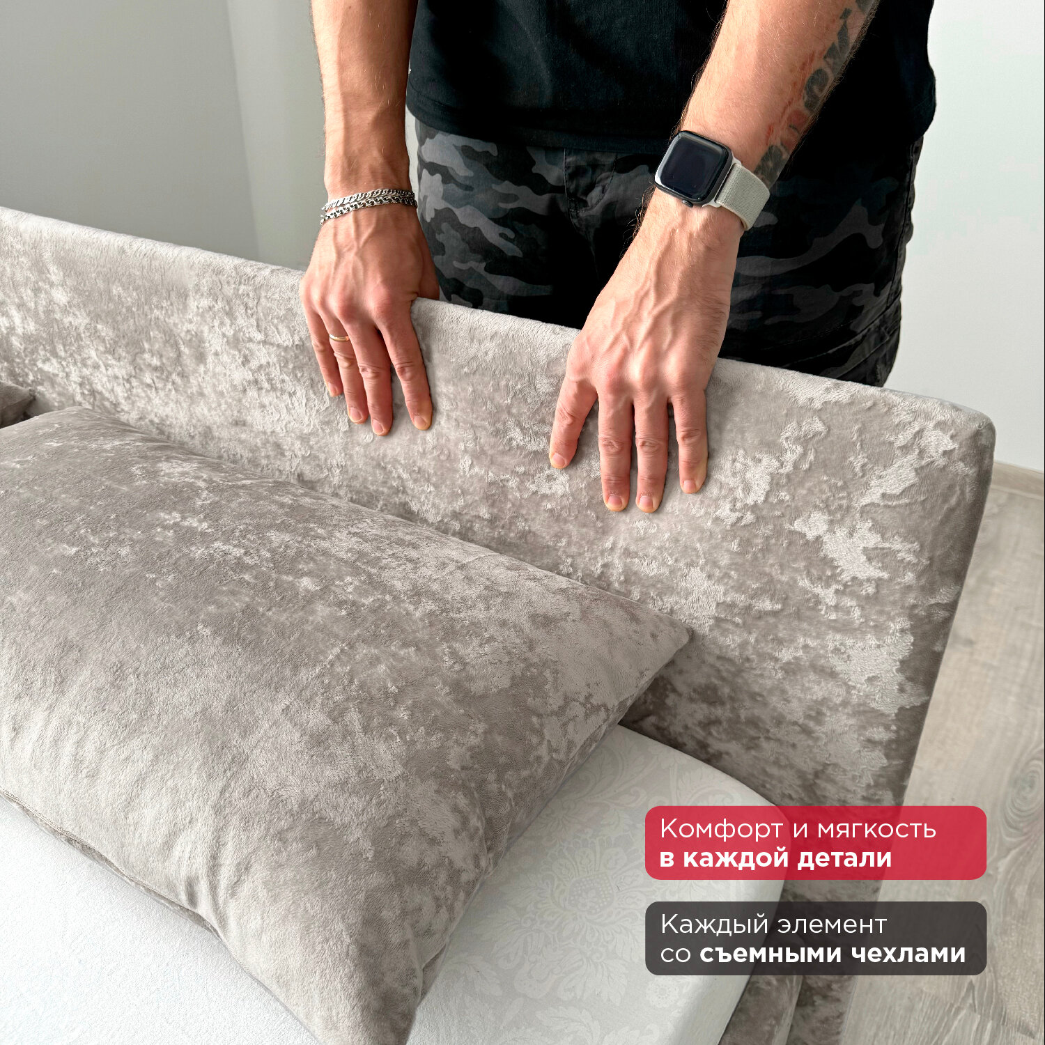 Кровать Redsofa Сити темно-бежевый Шайн / ножки хром 180х200 с ортопедическим основанием