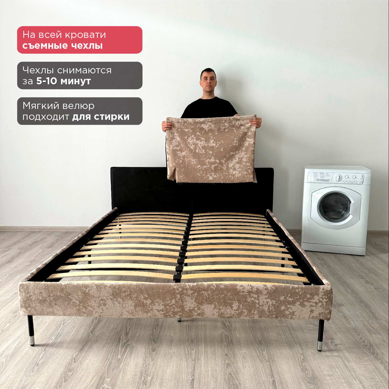 Кровать Redsofa Сити темно-бежевый Шайн / ножки хром 160х200 с ортопедическим основанием