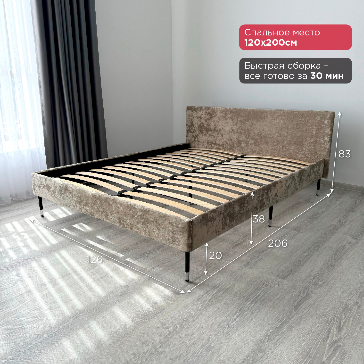 Кровать Redsofa Сити темно-бежевый Шайн / ножки хром 120х200 с ортопедическим основанием