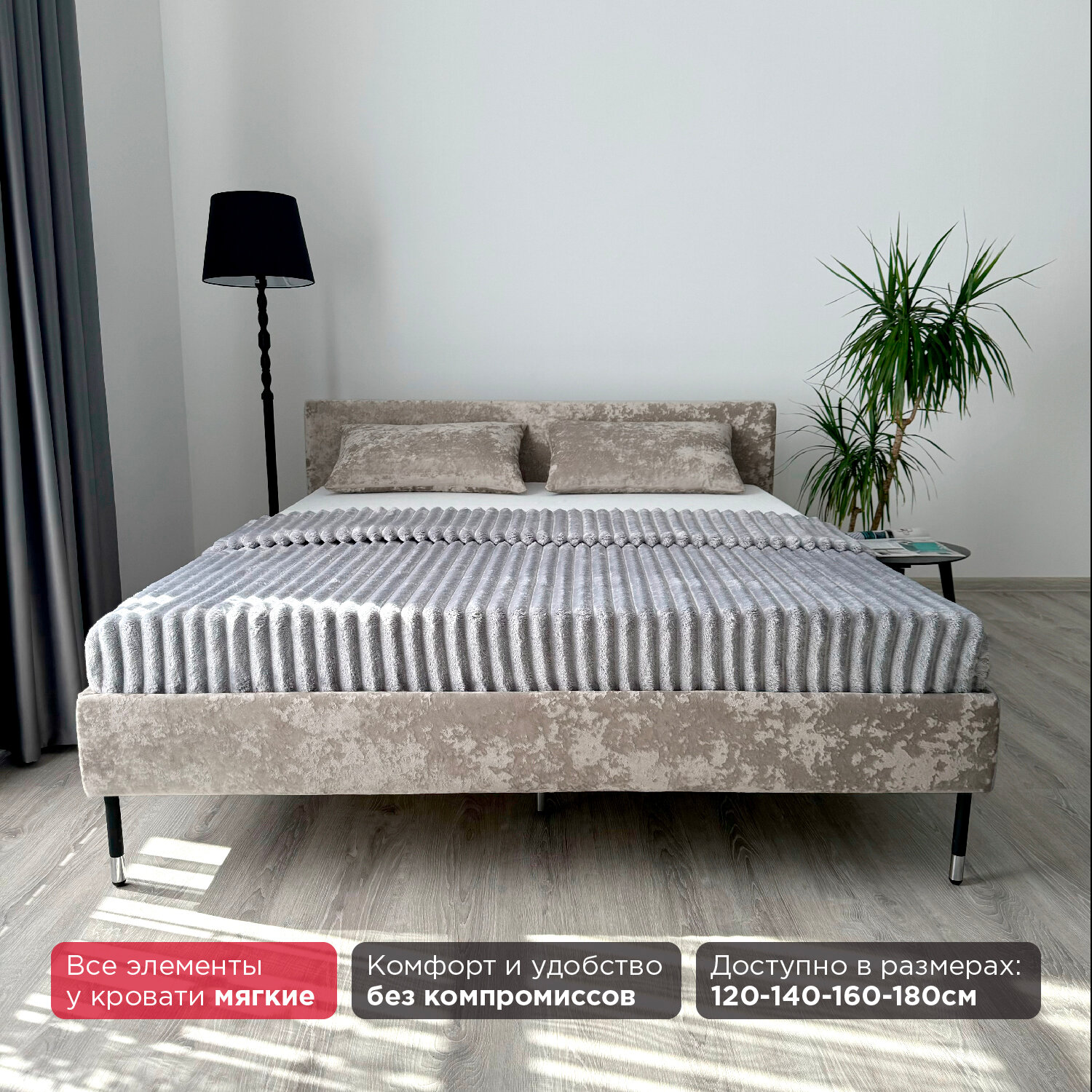 Кровать с матрасом Роза Серая Велюр 160х200