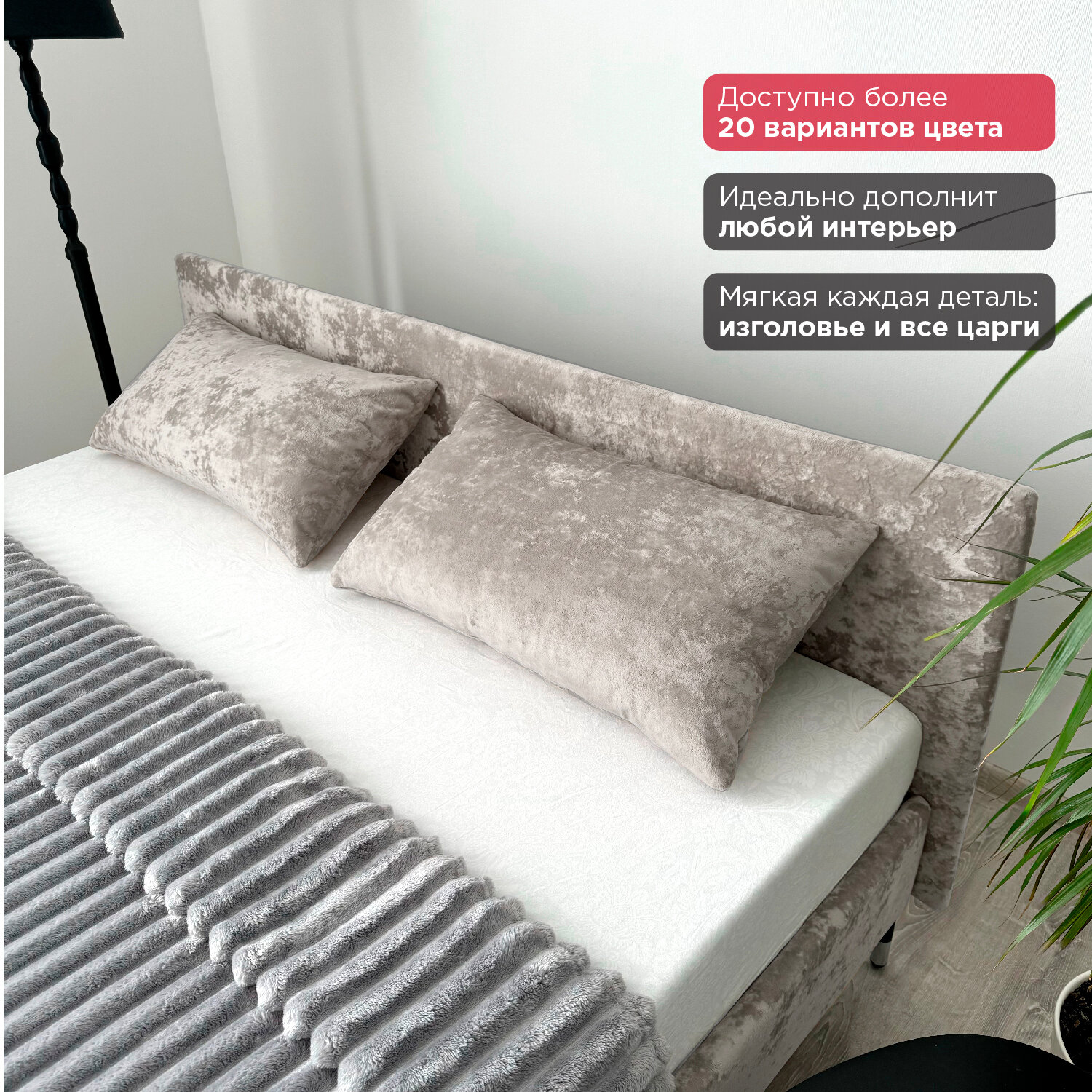 Кровать Redsofa Сити серебряный Шайн / ножки хром 180х200 с ортопедическим основанием