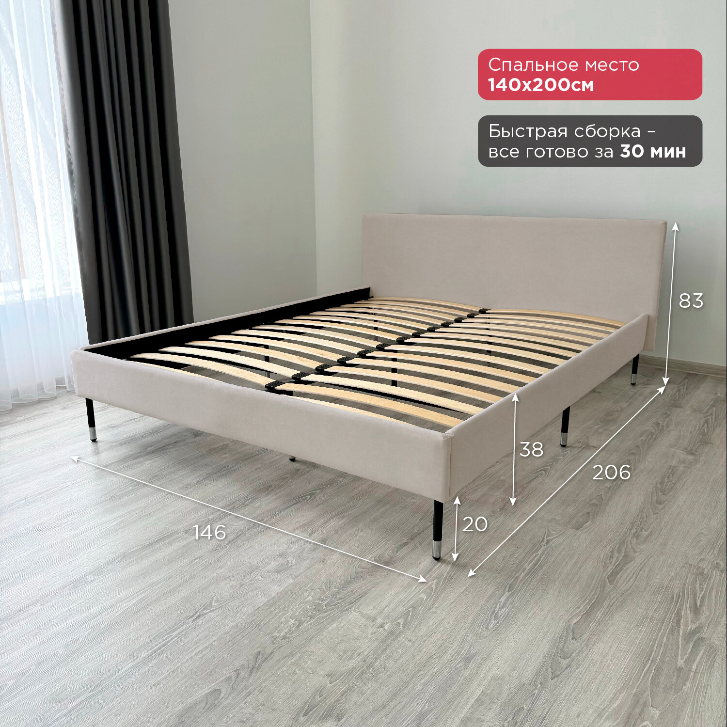 Кровать Redsofa Сити бежевый Шайн / ножки хром 140х200 с ортопедическим основанием