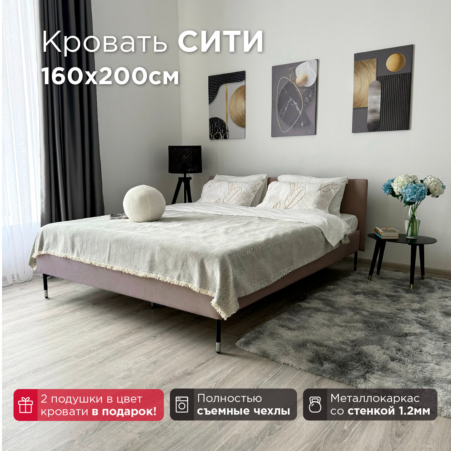 Кровать Redsofa Сити темно-бежевый Шайн / ножки хром 160х200 с ортопедическим основанием