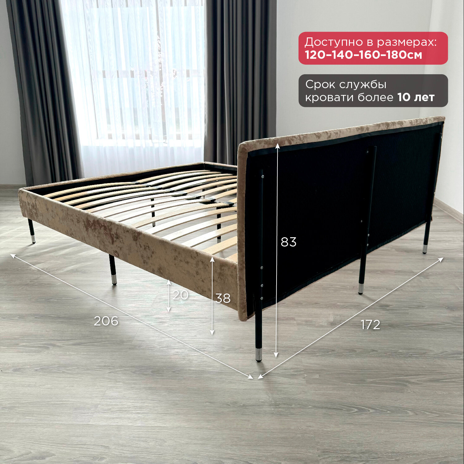 Кровать Redsofa Сити темно-бежевый Шайн / ножки хром 160х200 с ортопедическим основанием