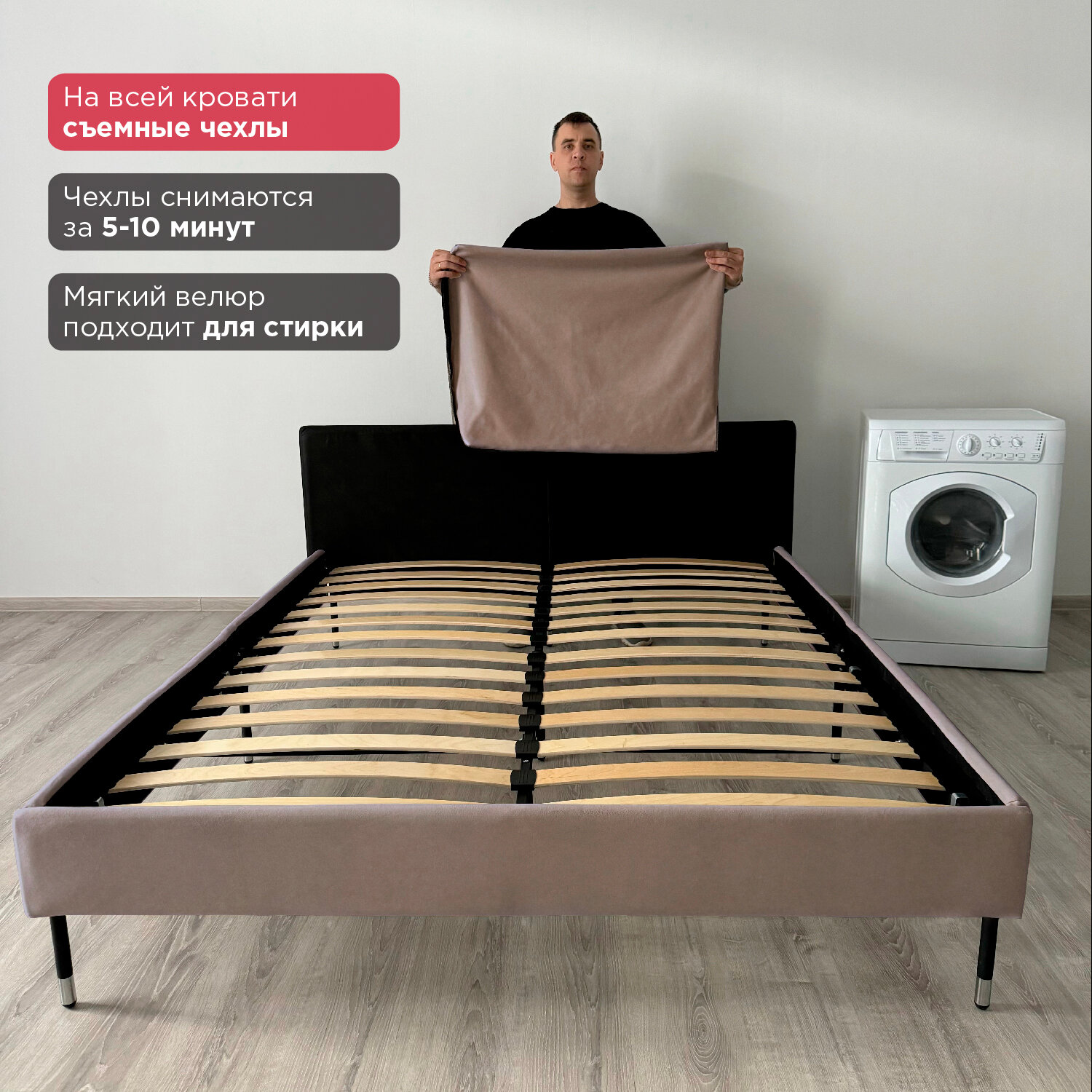 Кровать Redsofa Сити темно-бежевый Шайн / ножки хром 160х200 с ортопедическим основанием