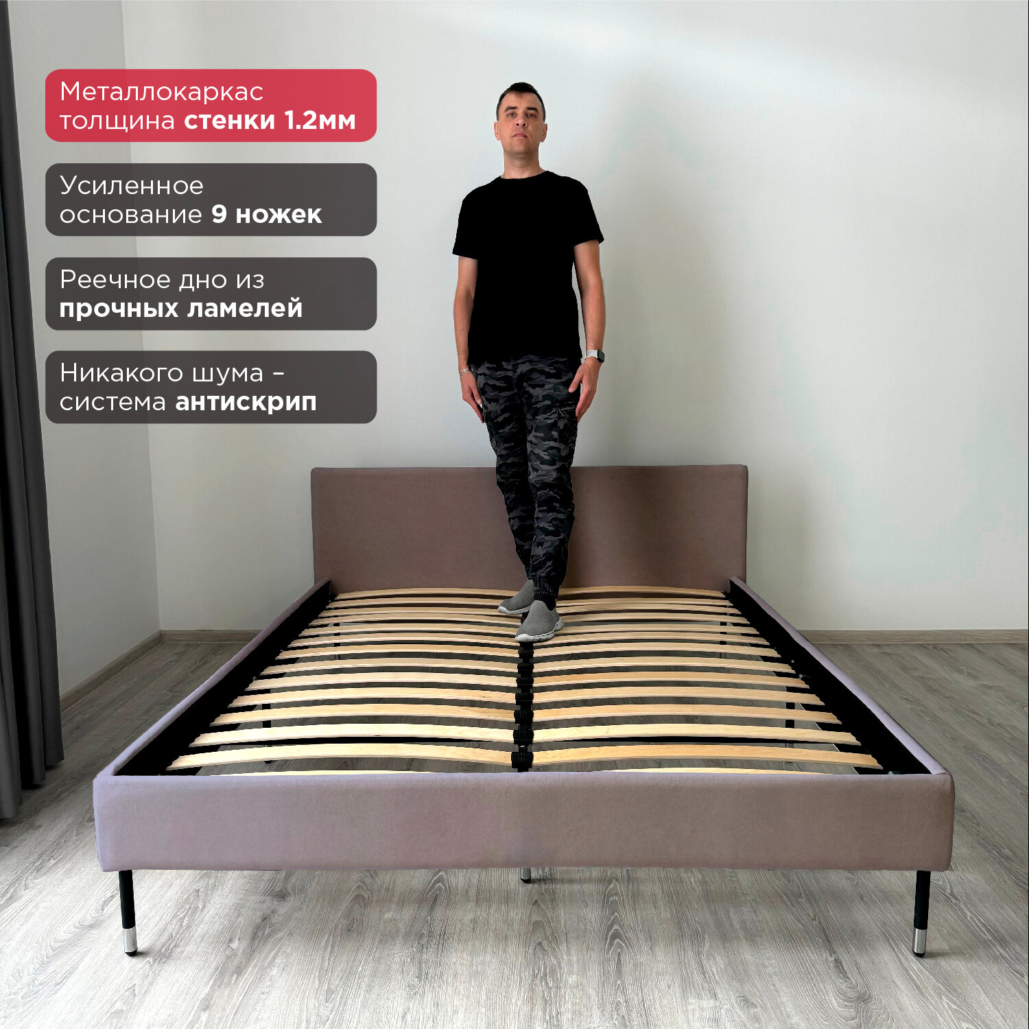 Кровать Redsofa Сити серый Шайн / ножки хром 160х200 с ортопедическим основанием