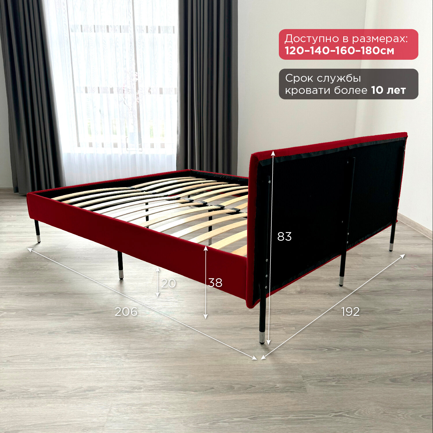 Кровать Redsofa Сити красный Шайн / ножки хром 140х200 с ортопедическим основанием
