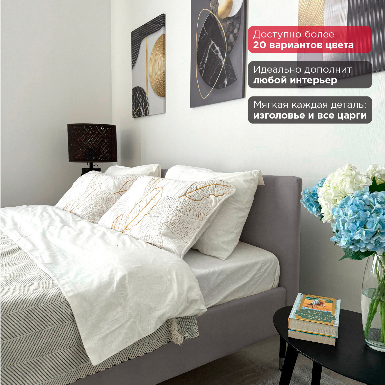 Кровать Redsofa Сити серый Teddi / ножки хром 160х200 с ортопедическим основанием