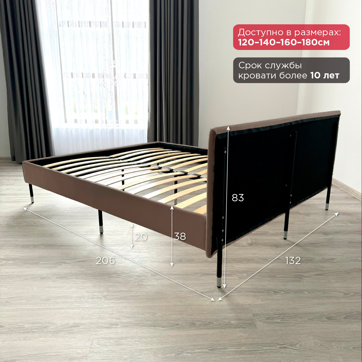 Кровать Redsofa Сити темно-бежевый Шайн / ножки хром 180х200 с ортопедическим основанием