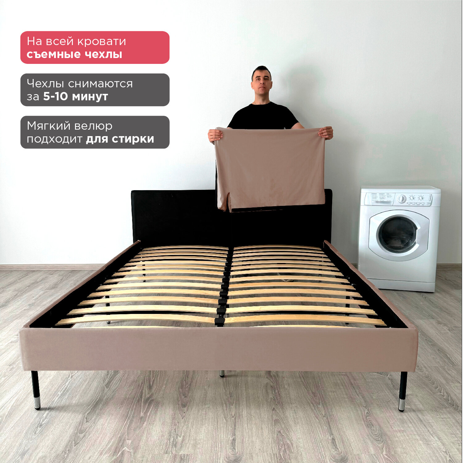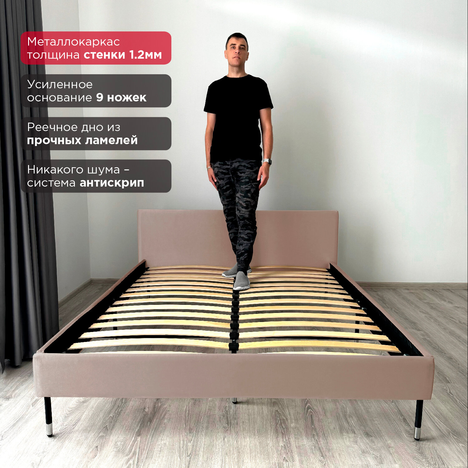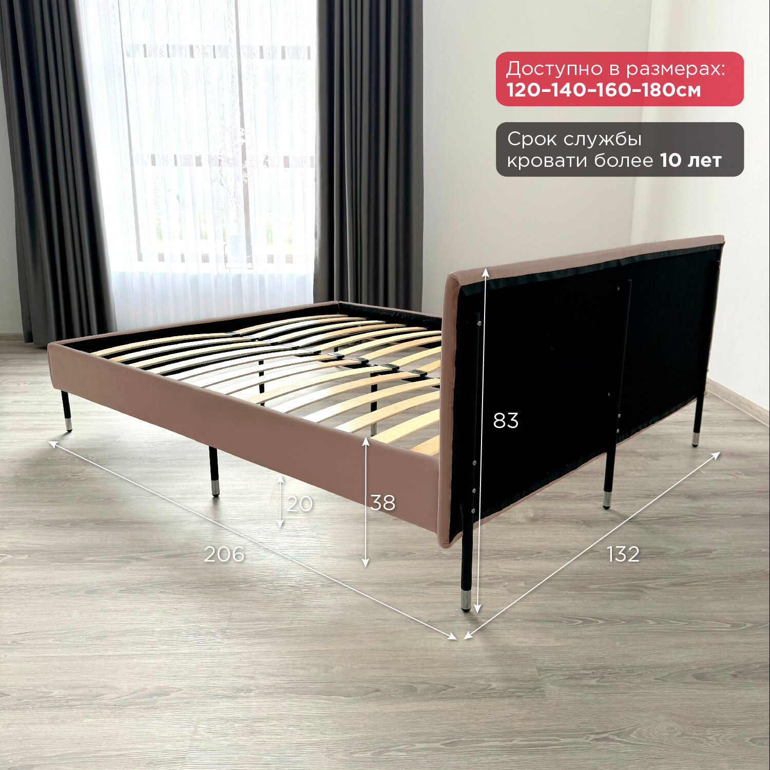 Кровать Redsofa Сити темно-бежевый Шайн / ножки хром 140х200 с ортопедическим основанием