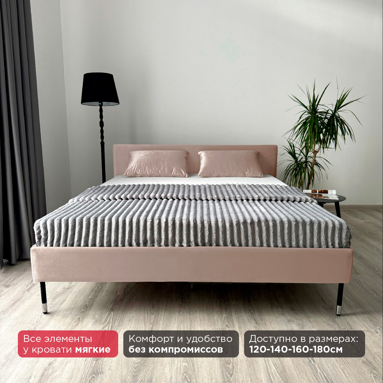 Кровать с матрасом Роза Серая Велюр 160х200