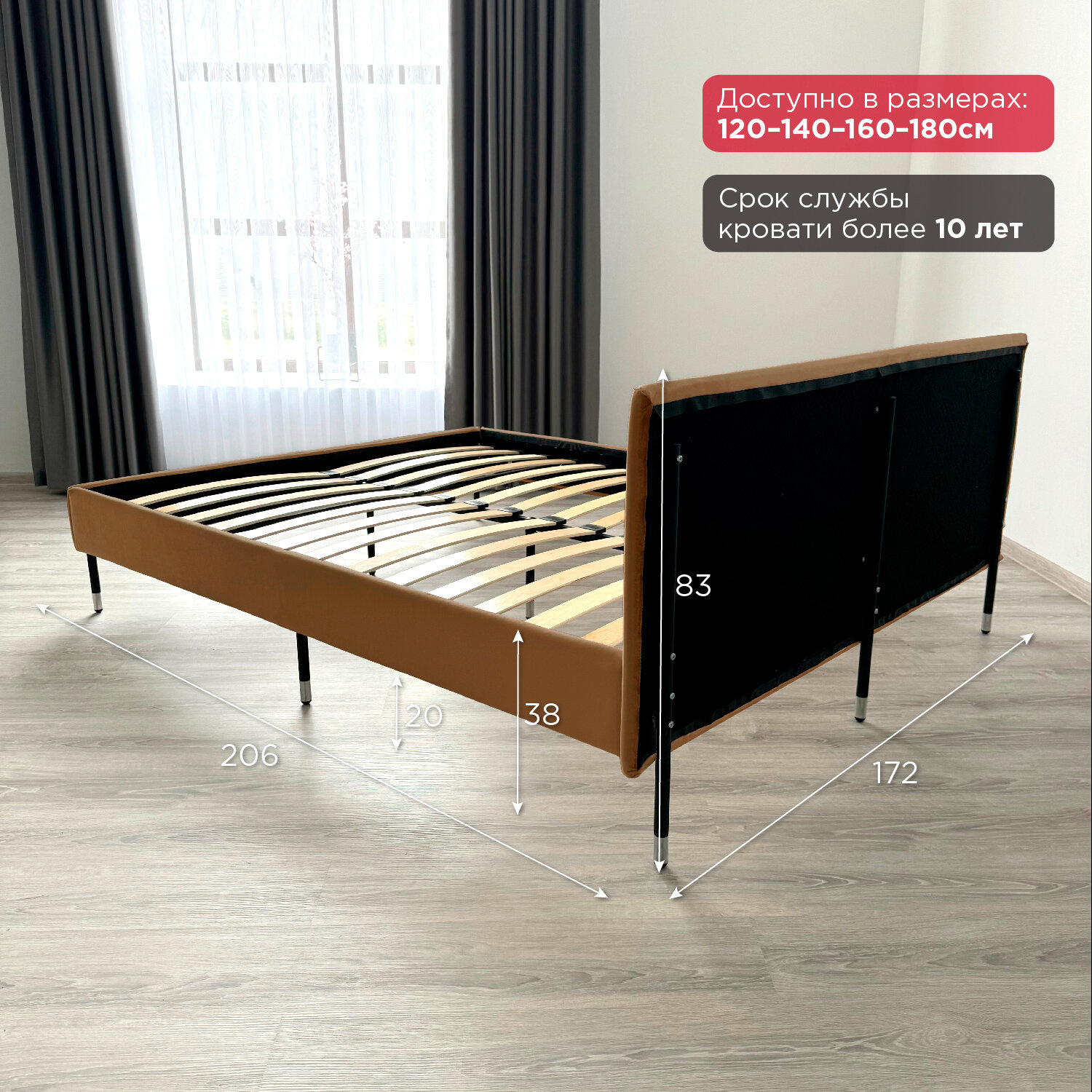 Кровать Redsofa Сити золотой Шайн / ножки хром 180х200 с ортопедическим основанием