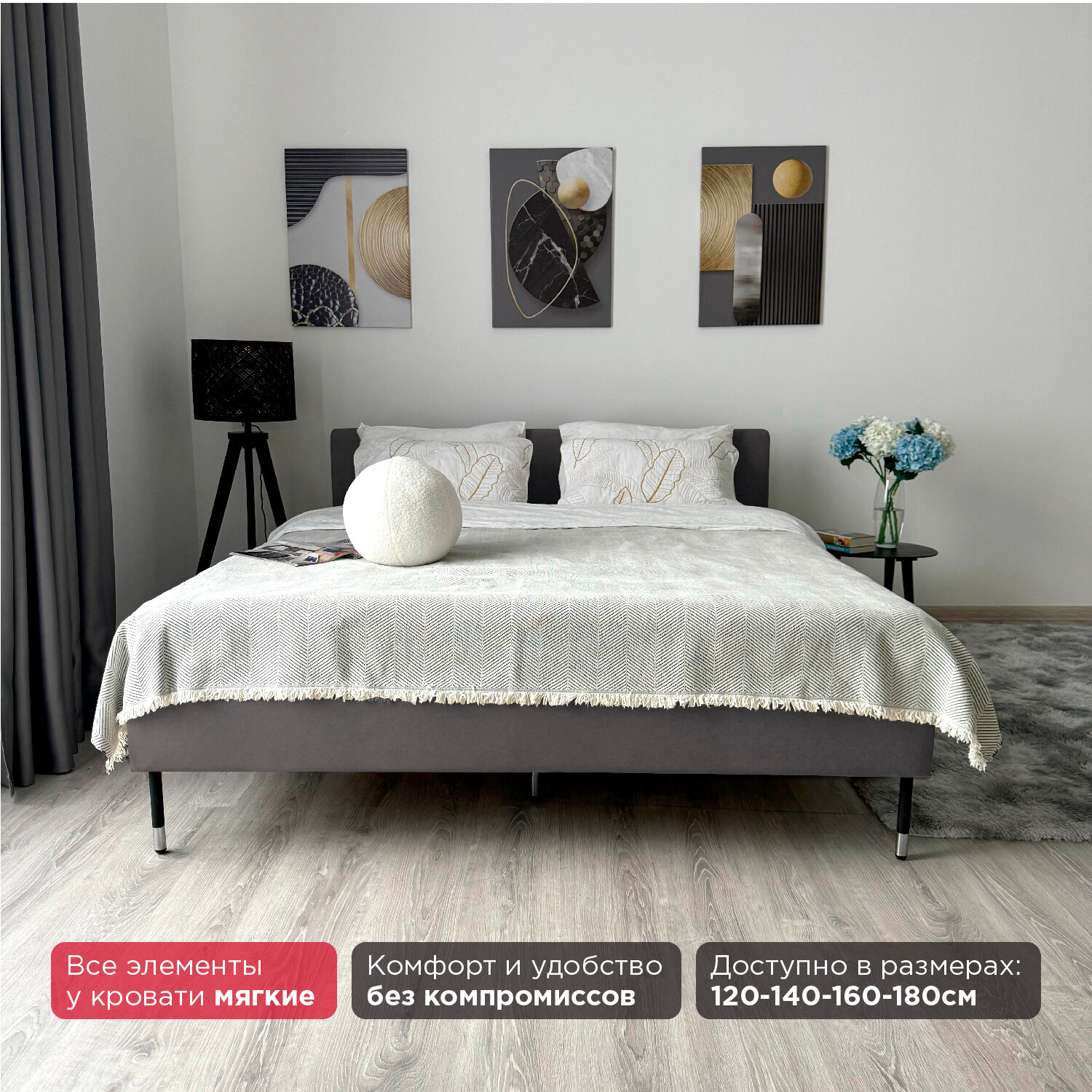 Кровать Redsofa Сити графит Teddi / ножки хром 160х200 с ортопедическим основанием
