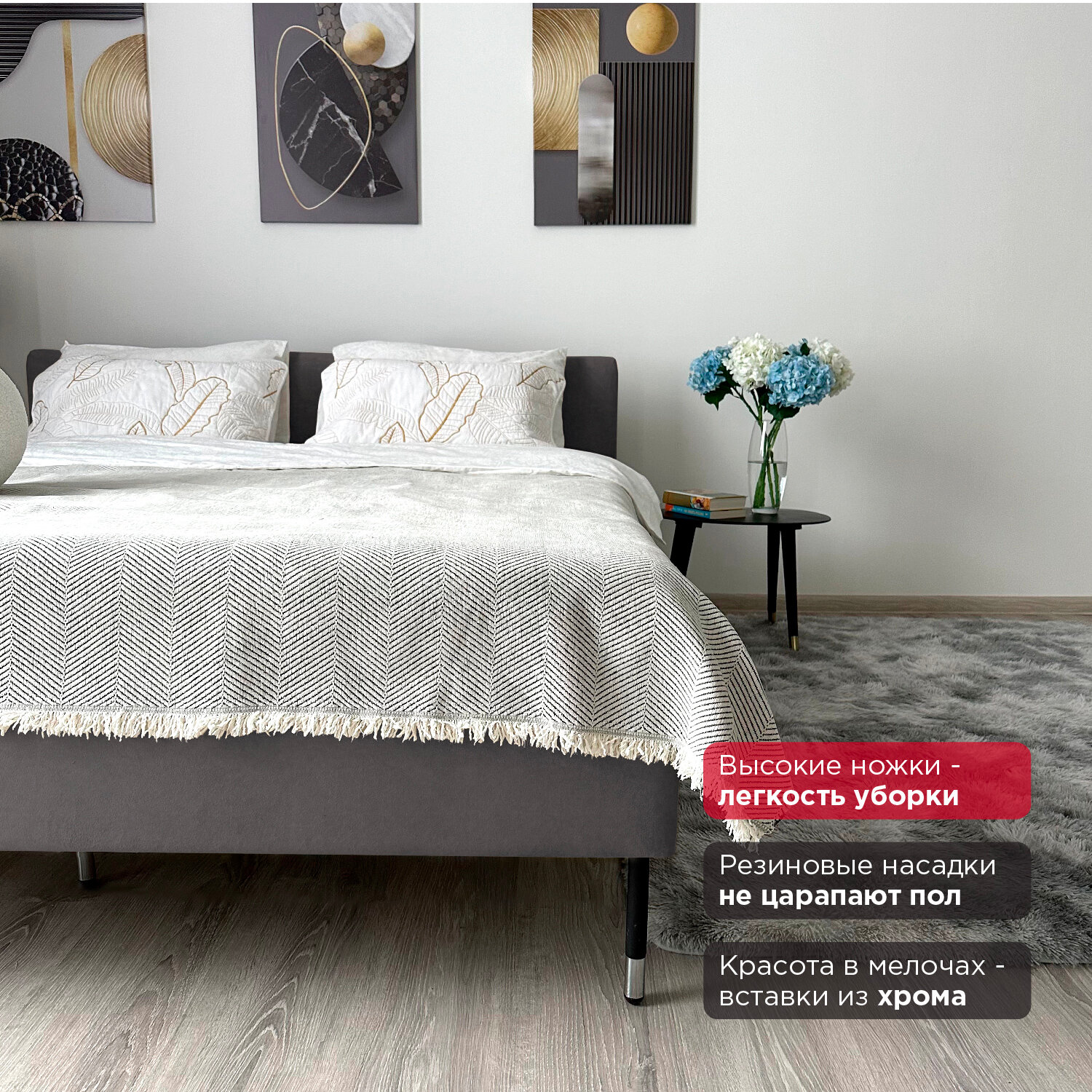 Кровать Redsofa Сити серый Шайн / ножки хром 160х200 с ортопедическим основанием