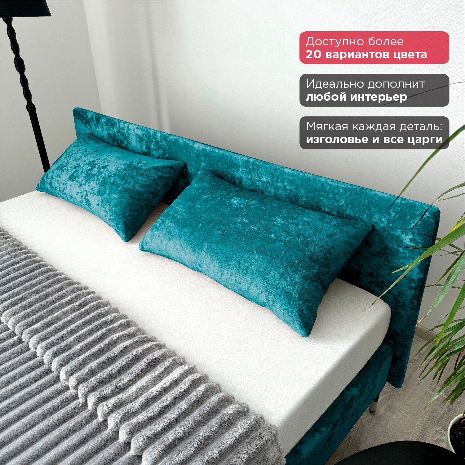 Кровать Redsofa Сити бирюзовый Teddi / ножки хром 180х200 с ортопедическим основанием