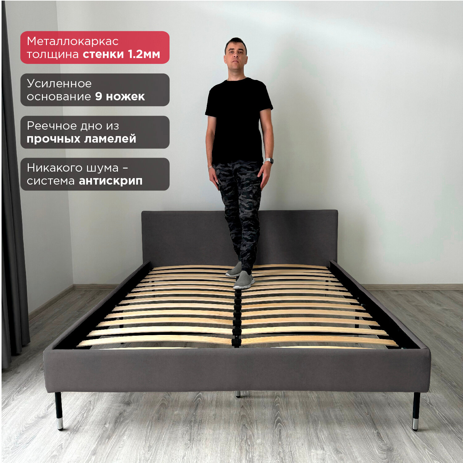 Купить Кровать Redsofa Сити графит Teddi / ножки хром 160х200 с ортопедическим основанием