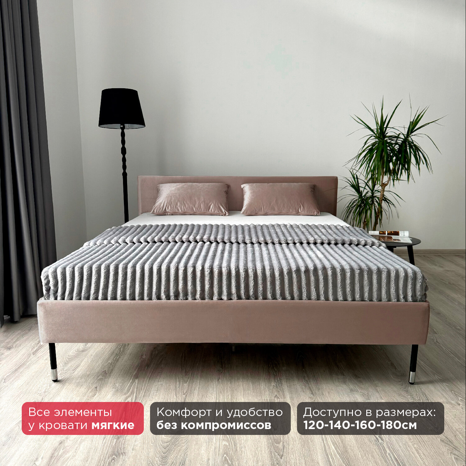 Кровать с матрасом Роза Серая Велюр 160х200
