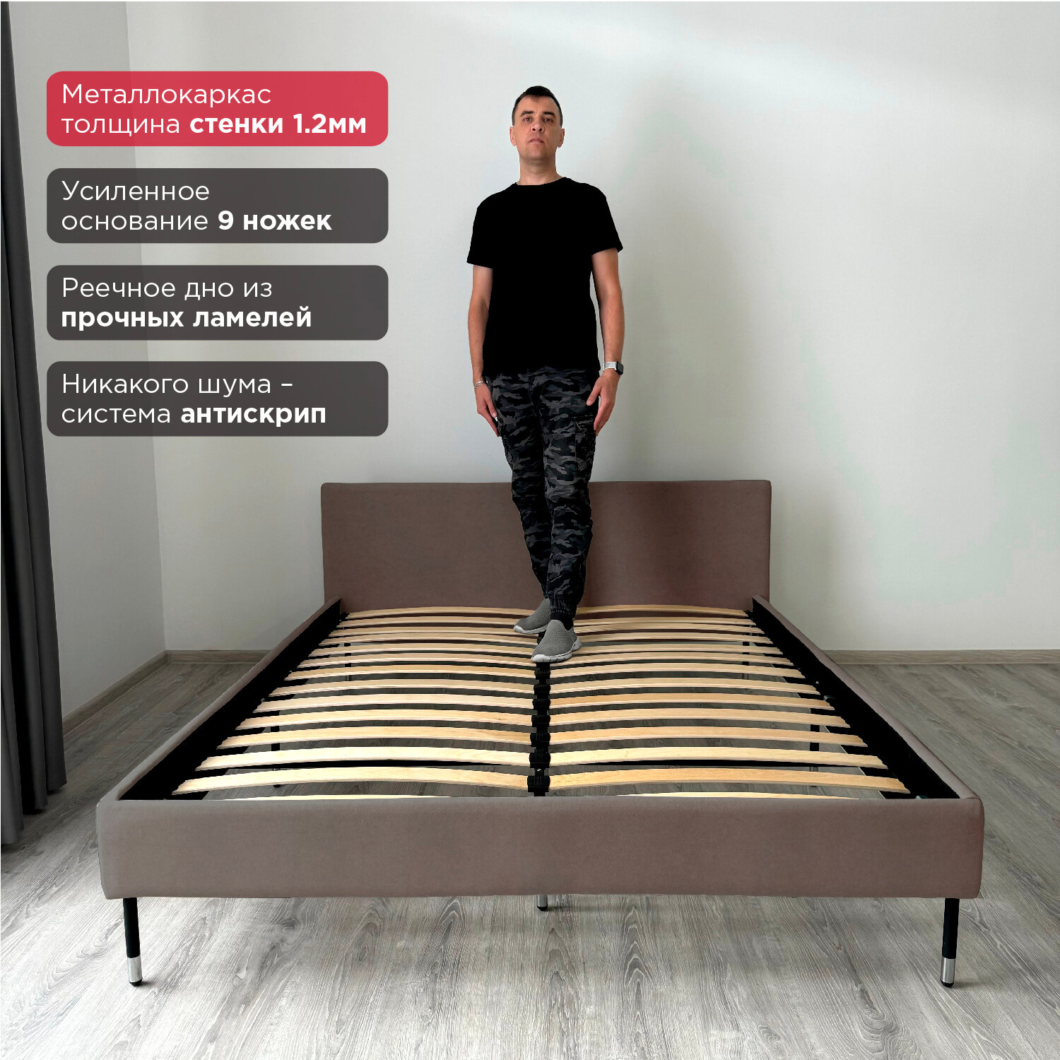 Кровать Redsofa Сити темно-коричневый Teddi / ножки хром 140х200 с ортопедическим основанием