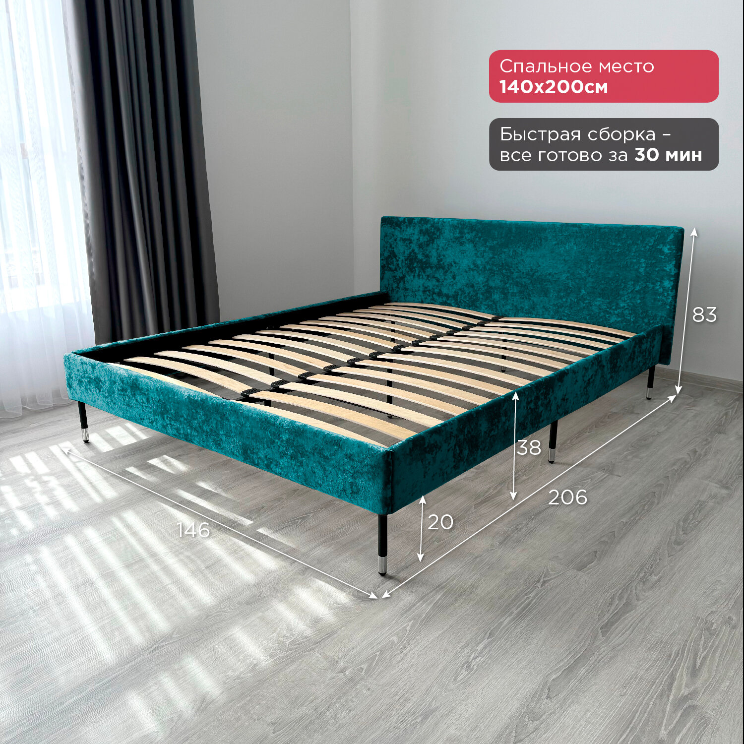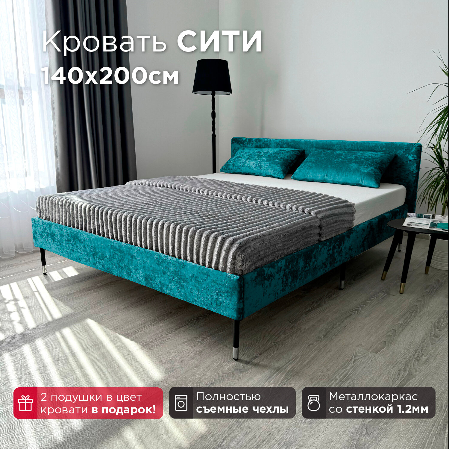 Кровать Redsofa Сити бирюзовый Teddi / ножки хром 140х200 с ортопедическим основанием
