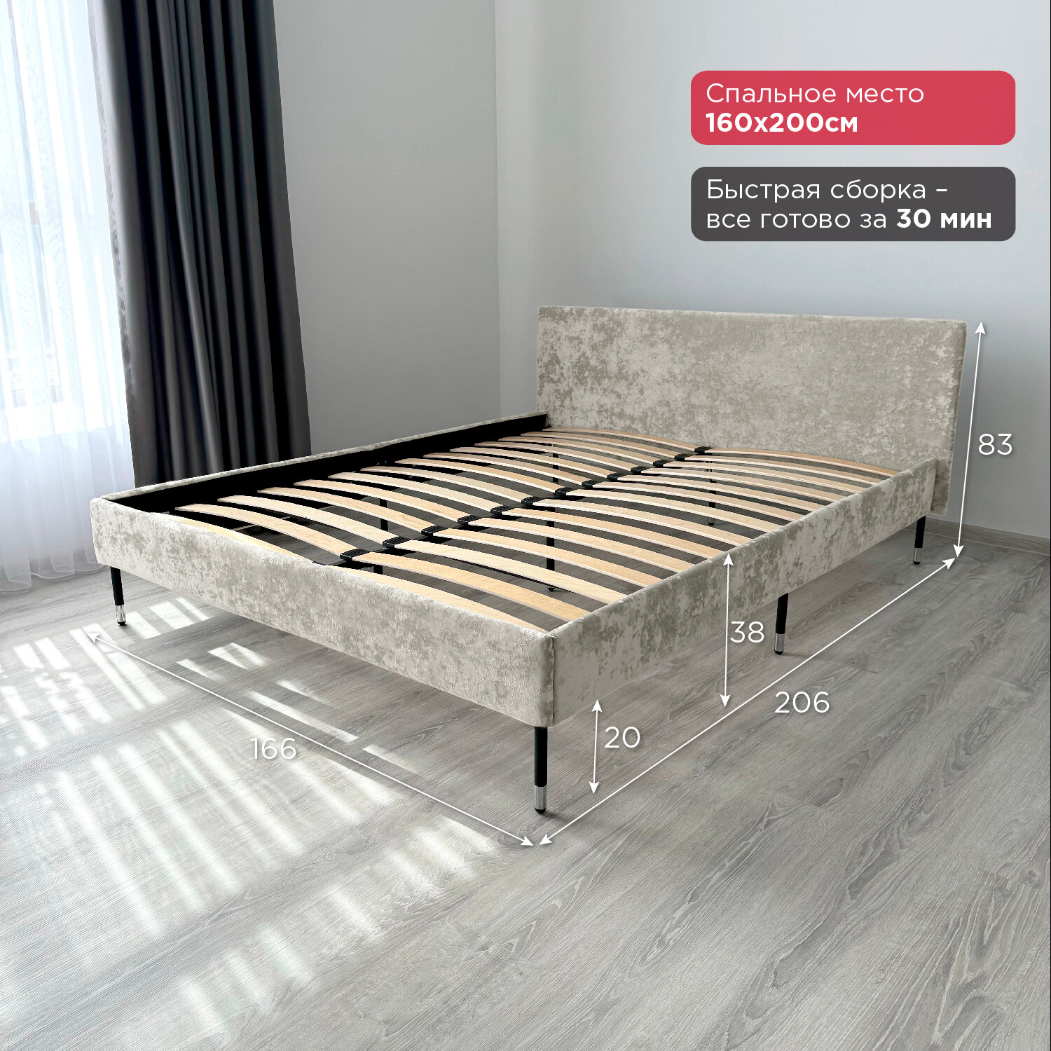 Кровать Redsofa Сити темно-бежевый Шайн / ножки хром 160х200 с ортопедическим основанием