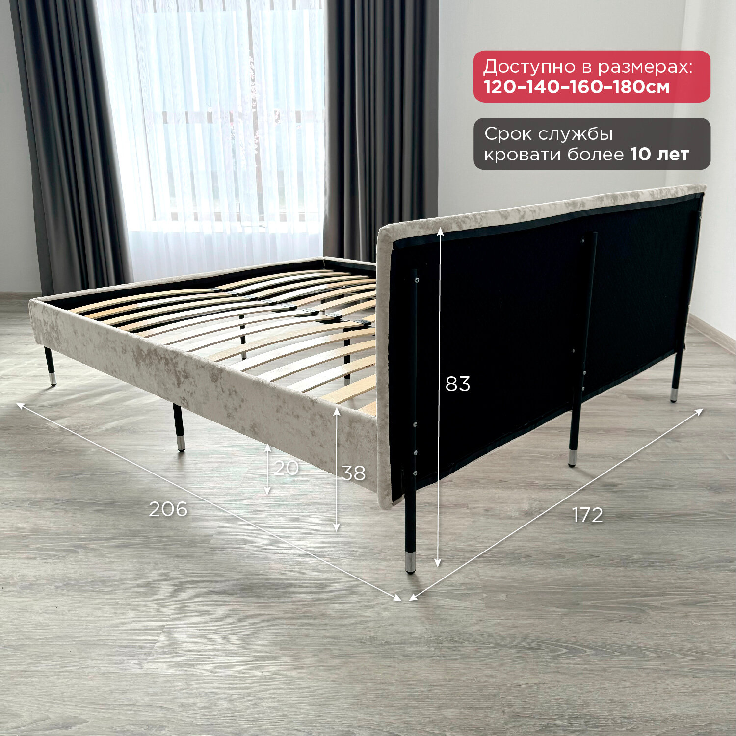 Кровать Redsofa Сити темно-бежевый Шайн / ножки хром 140х200 с ортопедическим основанием