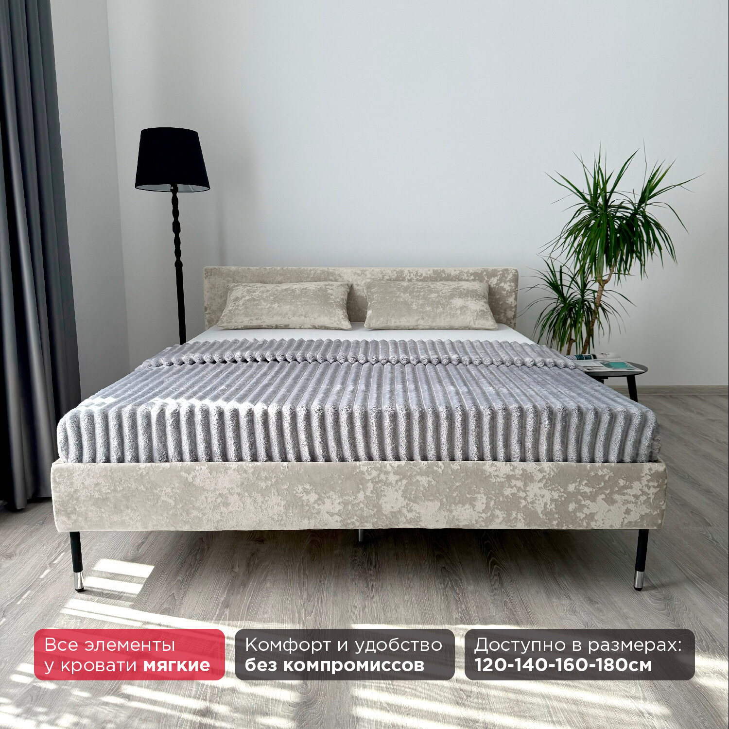 Кровать Redsofa Сити бежевый Шайн / ножки хром 140х200 с ортопедическим основанием