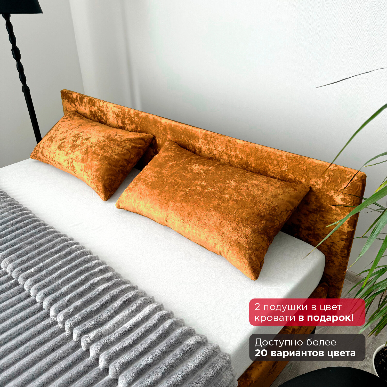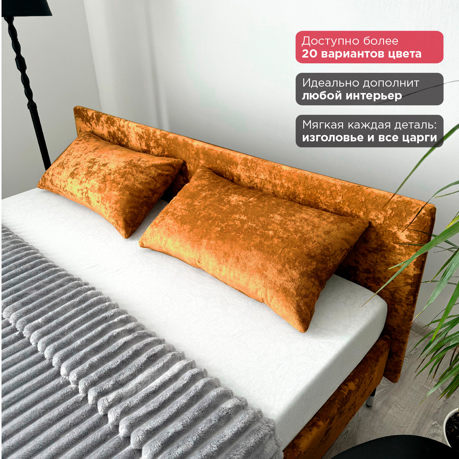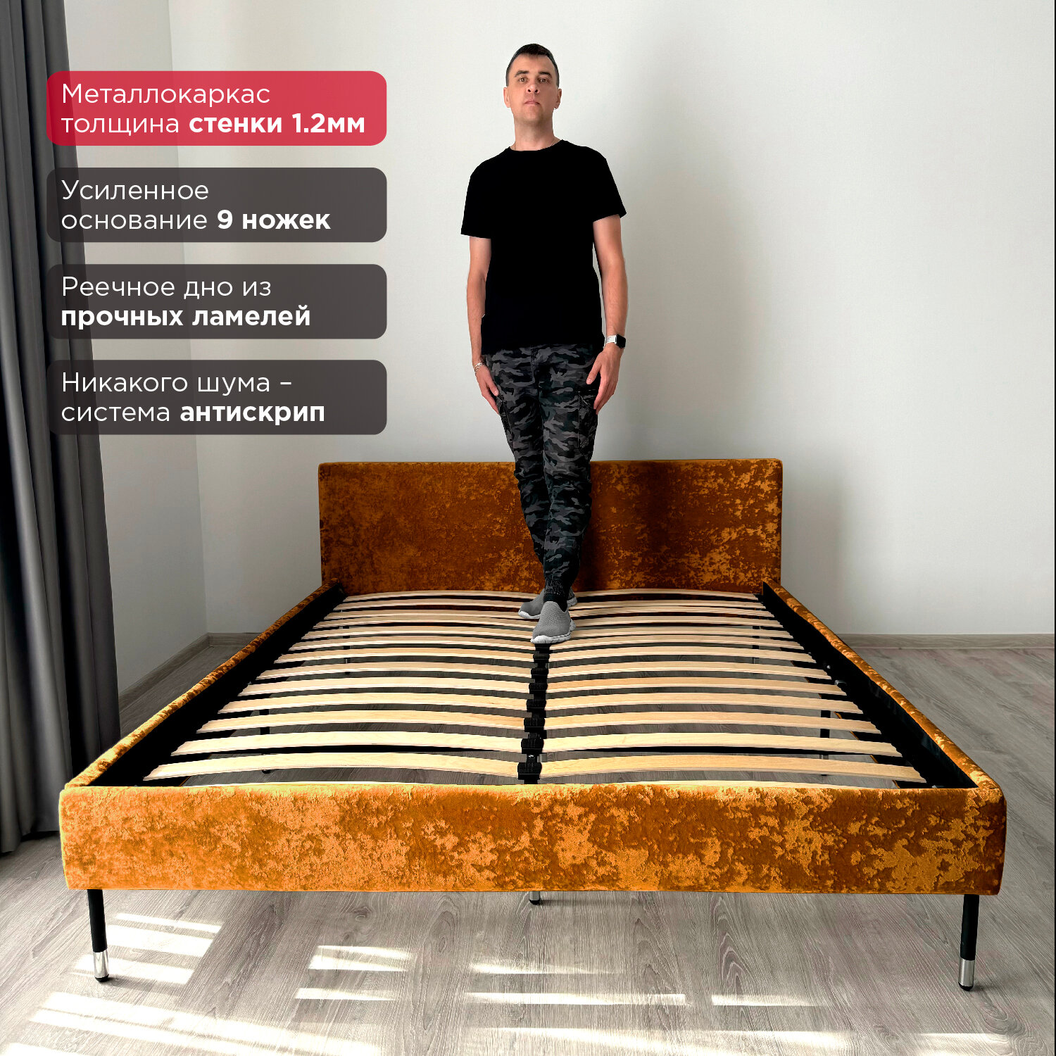 Кровать Redsofa Сити золотой Шайн / ножки хром 160х200 с ортопедическим основанием
