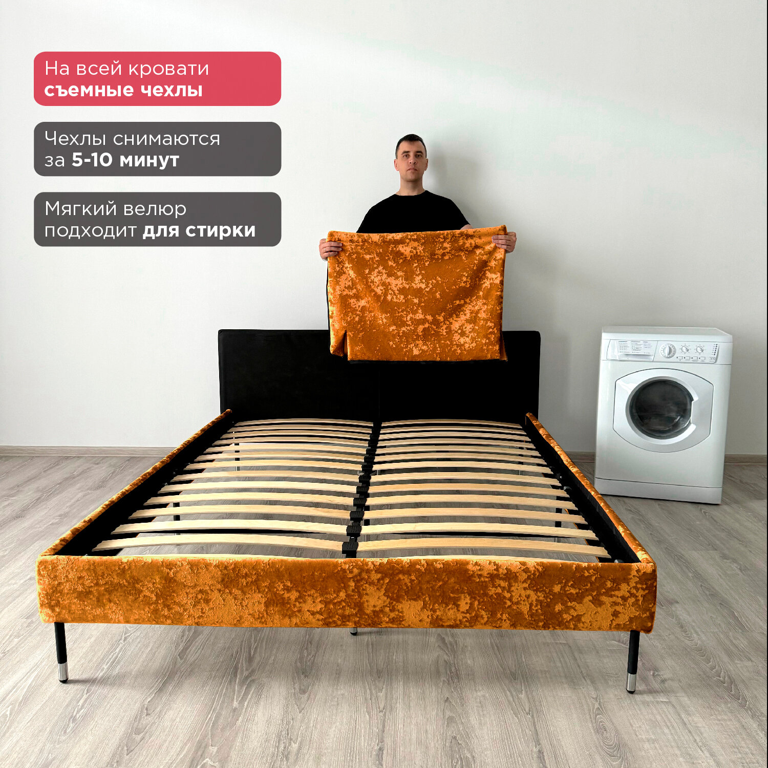 Кровать Redsofa Сити охра Ocean / ножки хром 140х200 с ортопедическим основанием