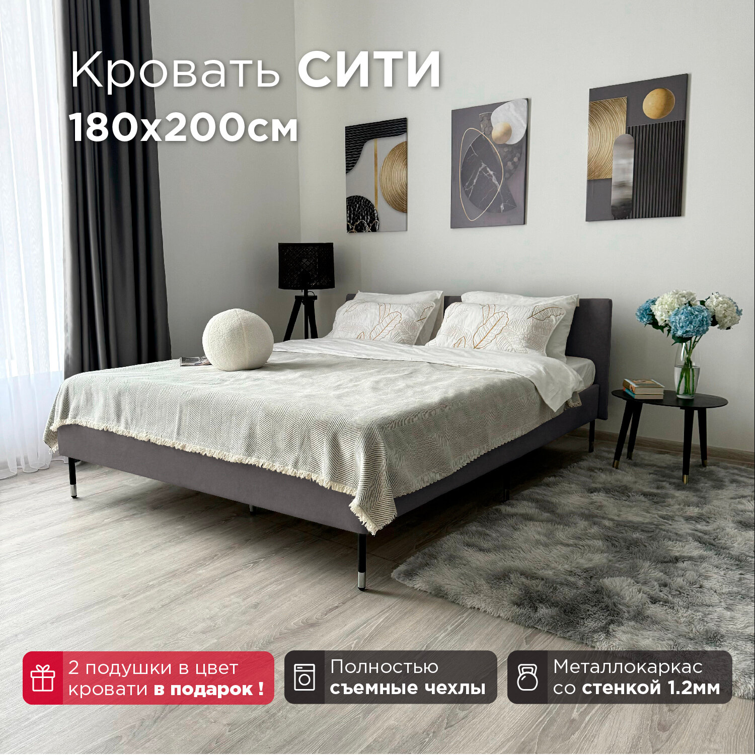 Кровать Redsofa Сити серый Шайн / ножки хром 180х200 с ортопедическим основанием