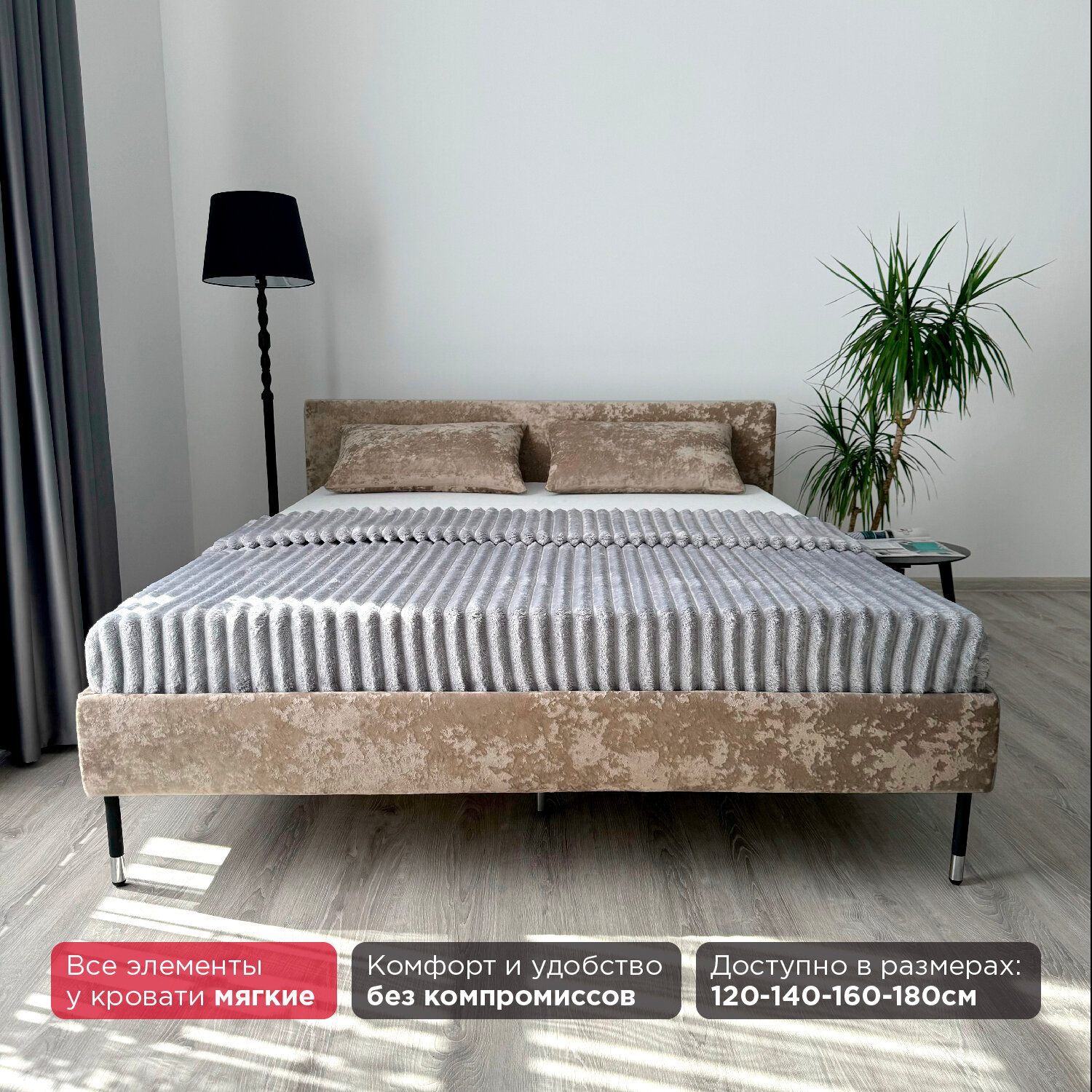 Кровать Redsofa Сити золотой Шайн / ножки хром 140х200 с ортопедическим основанием
