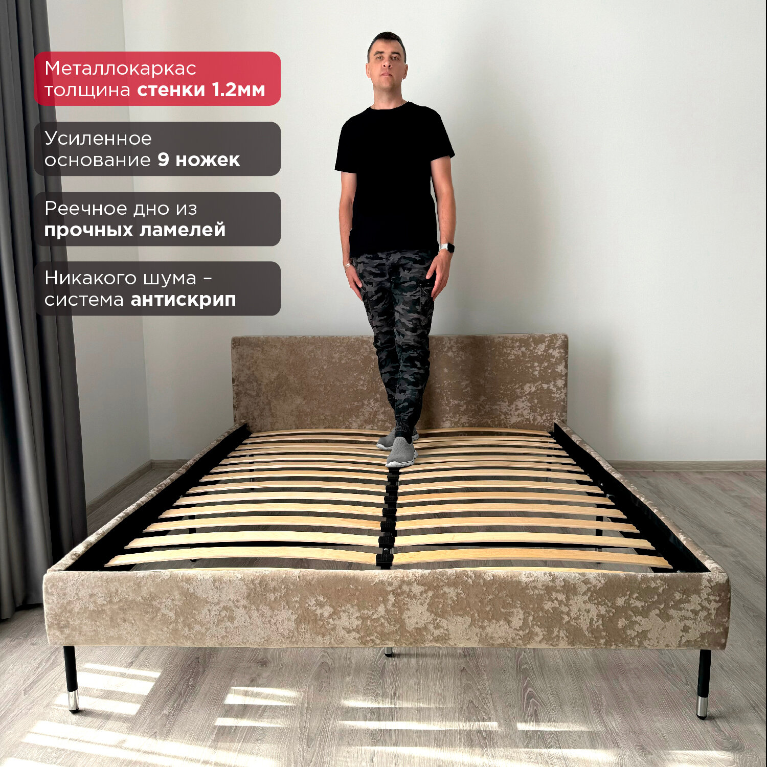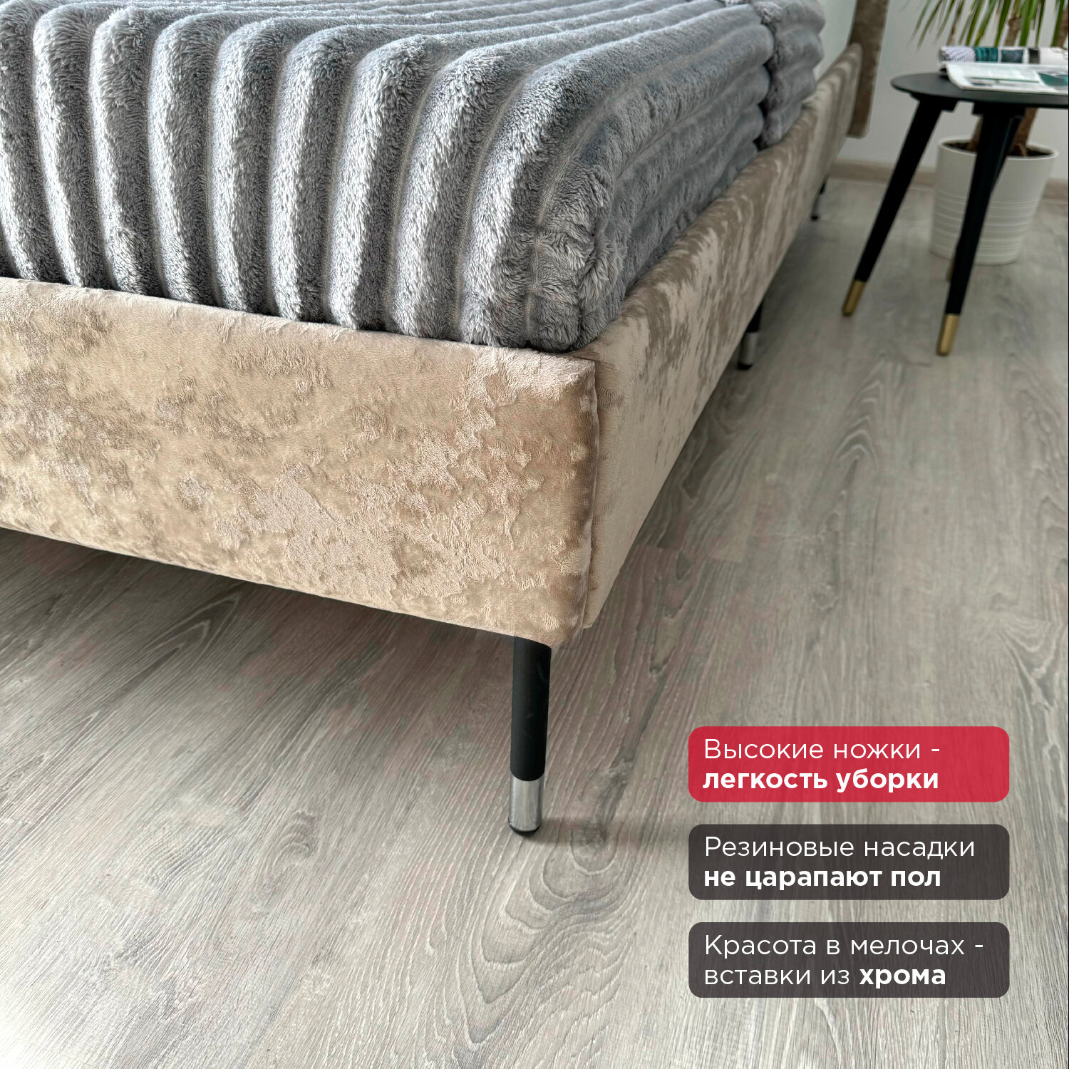Кровать Redsofa Сити золотой Шайн / ножки хром 180х200 с ортопедическим основанием