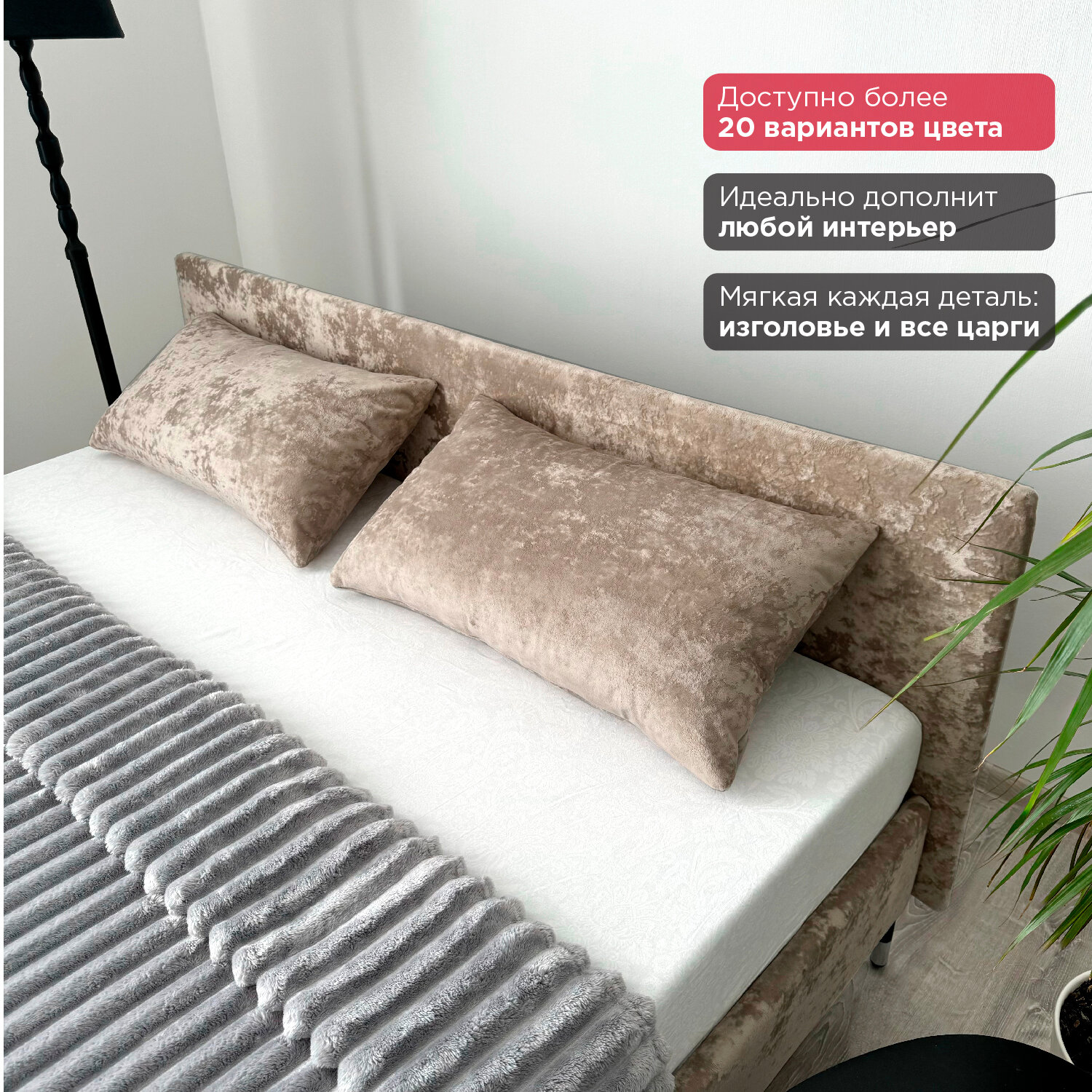 Кровать Redsofa Сити темно-бежевый Шайн / ножки хром 160х200 с ортопедическим основанием
