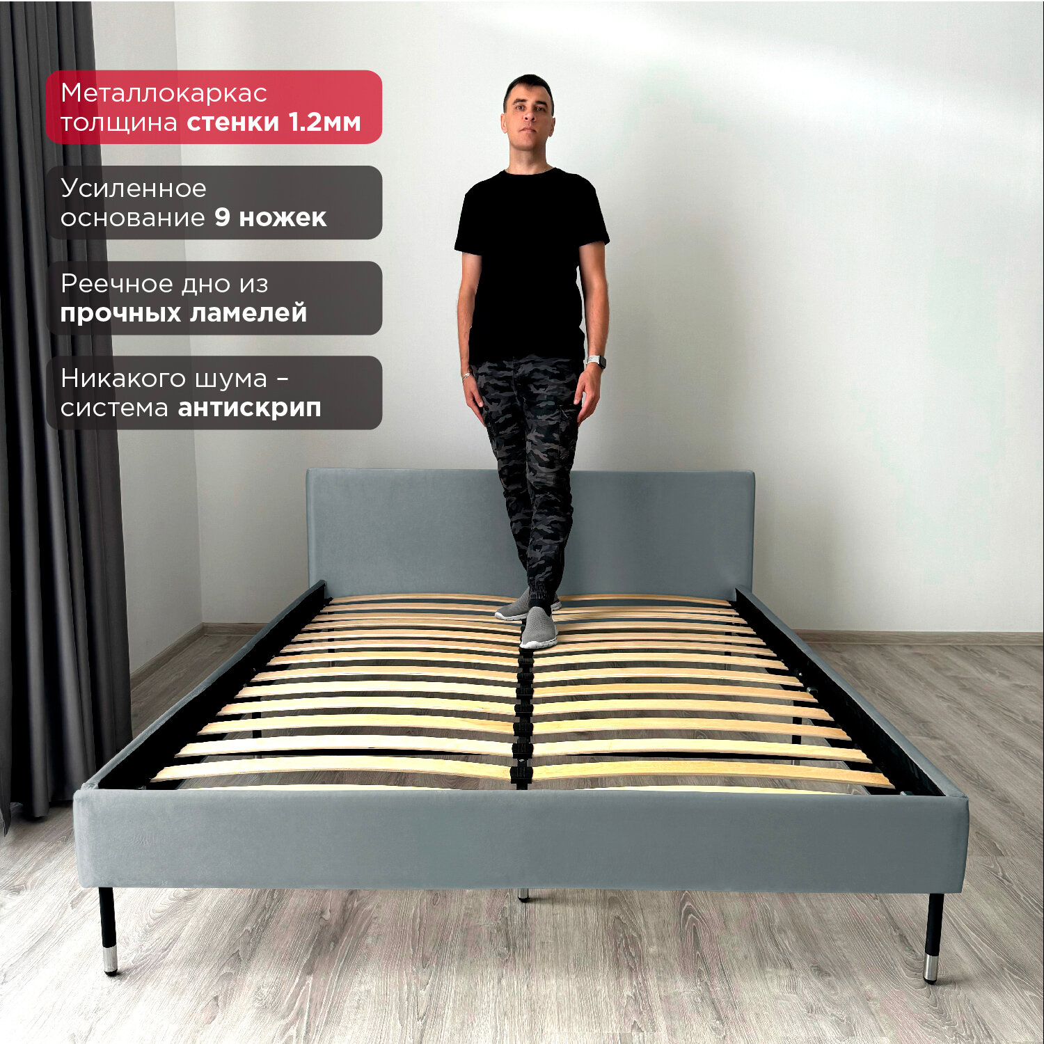 Кровать Redsofa Сити серый Шайн / ножки хром 160х200 с ортопедическим основанием