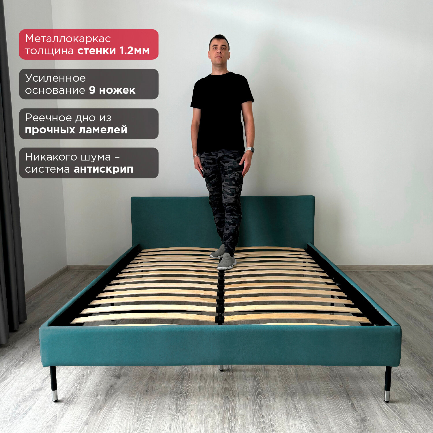 Кровать Redsofa Сити бирюзовый Teddi / ножки хром 160х200 с ортопедическим основанием