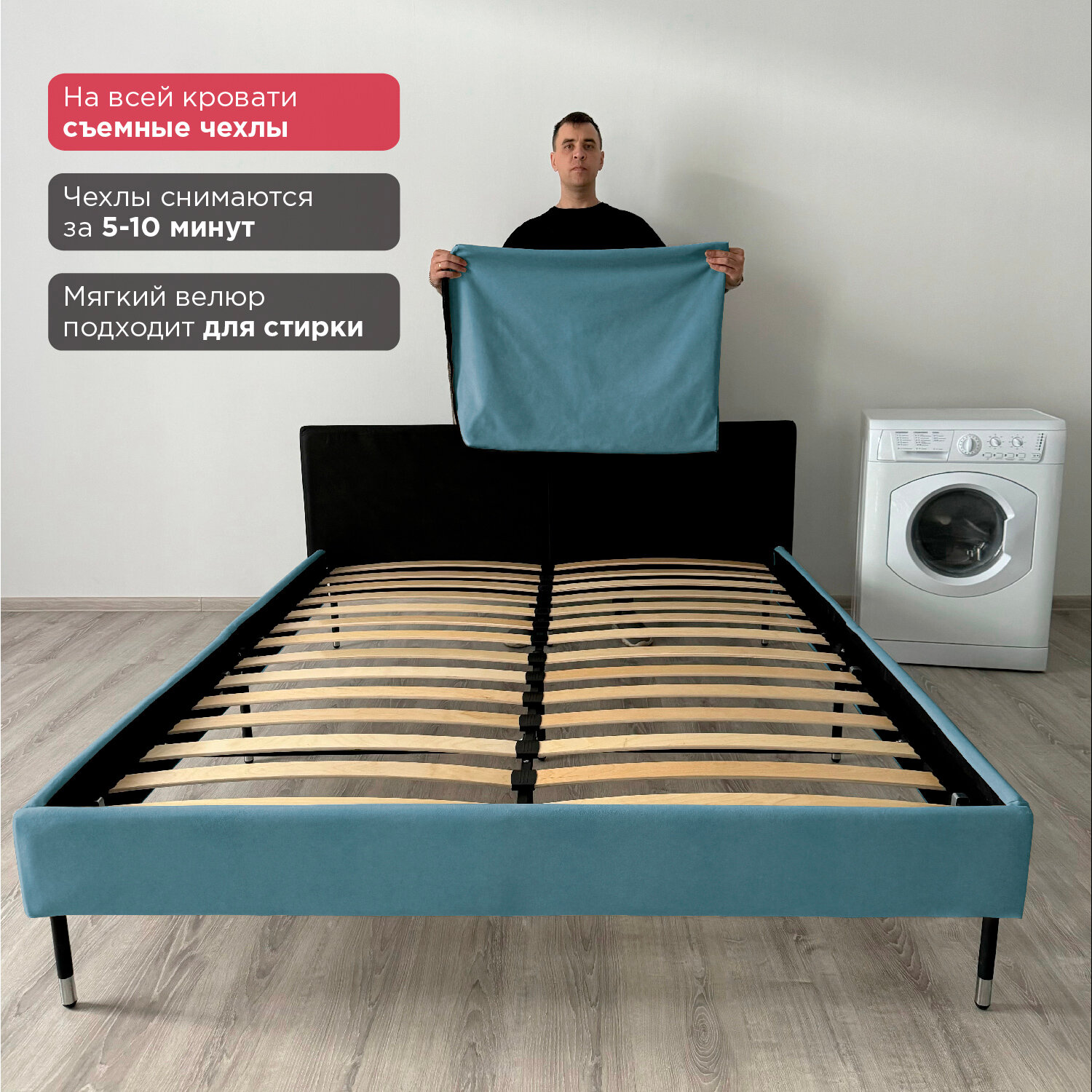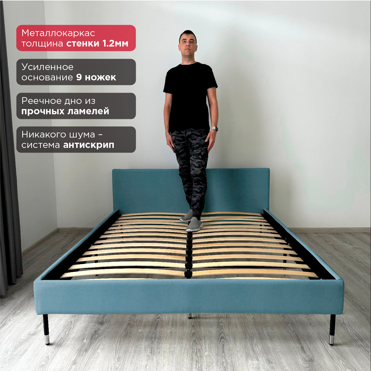 Кровать Redsofa Сити бирюзовый Teddi / ножки хром 160х200 с ортопедическим основанием