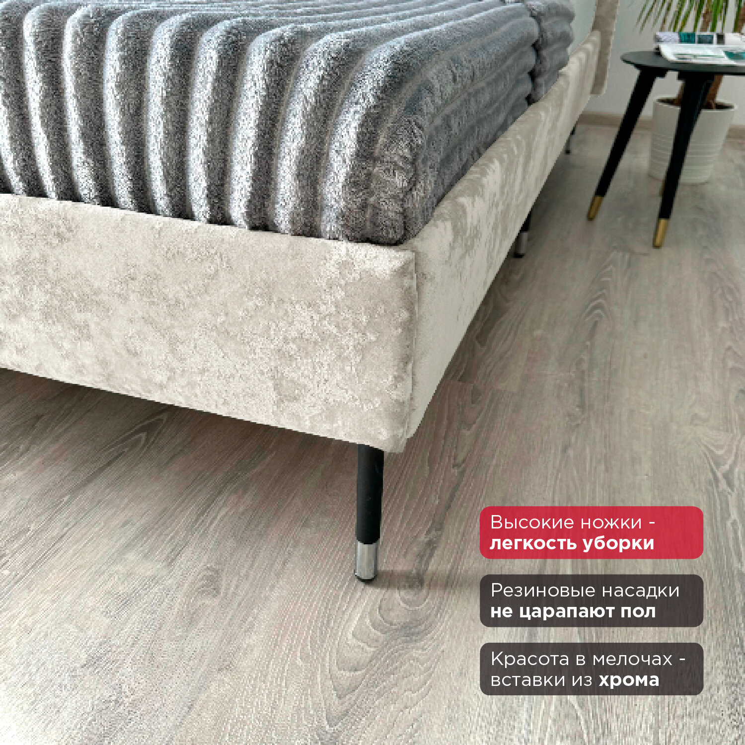 Кровать Redsofa Сити золотой Шайн / ножки хром 180х200 с ортопедическим основанием