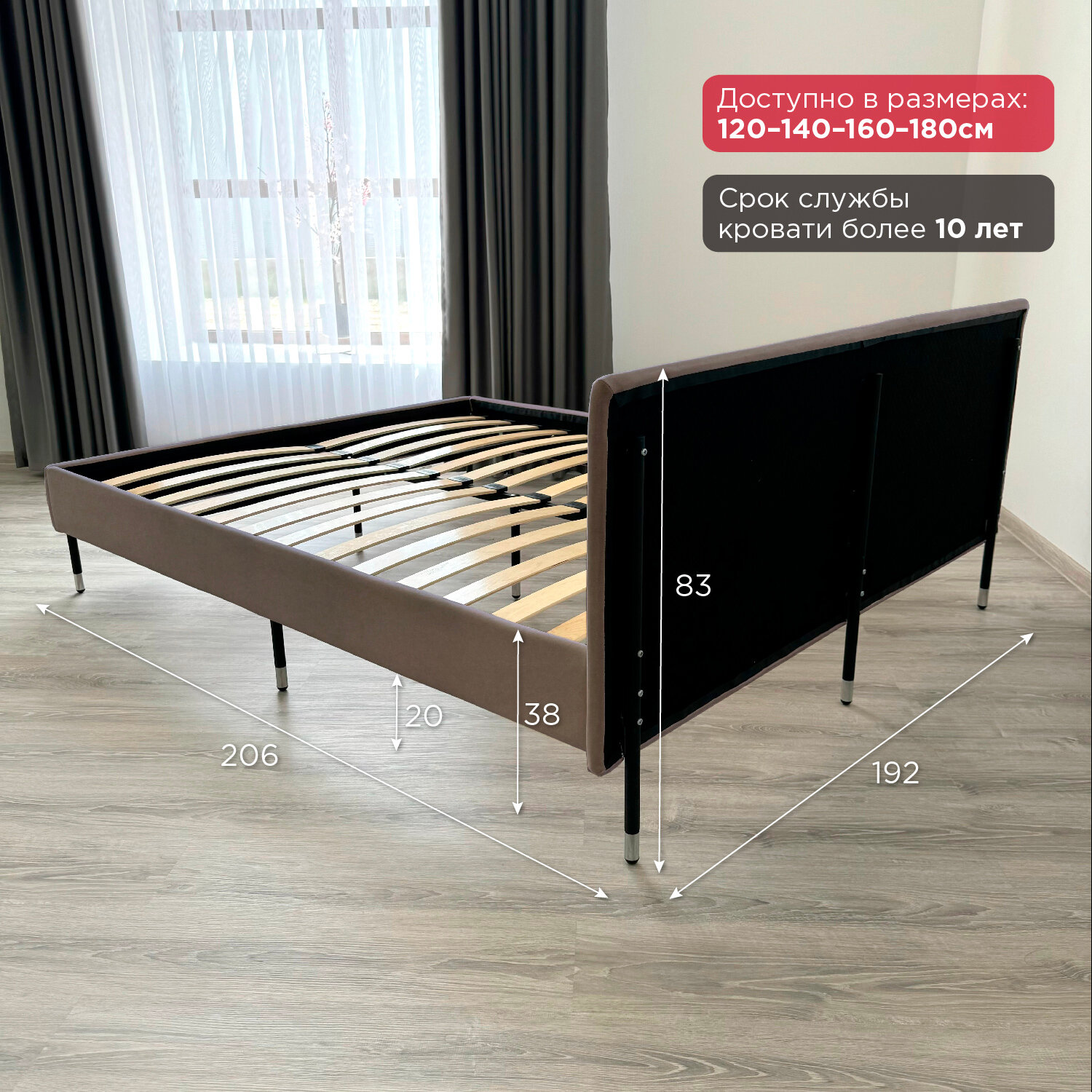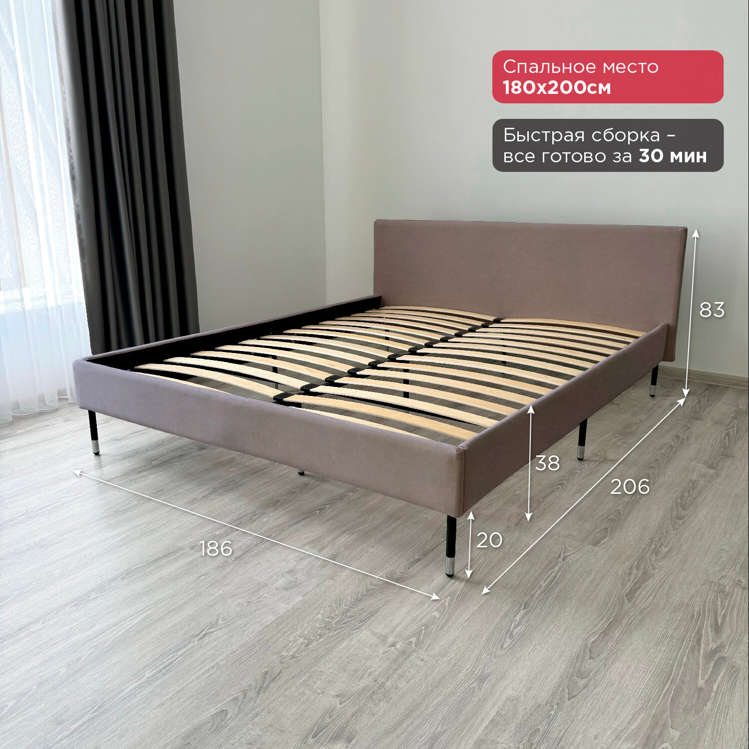 Кровать Redsofa Сити темно-бежевый Шайн / ножки хром 180х200 с ортопедическим основанием