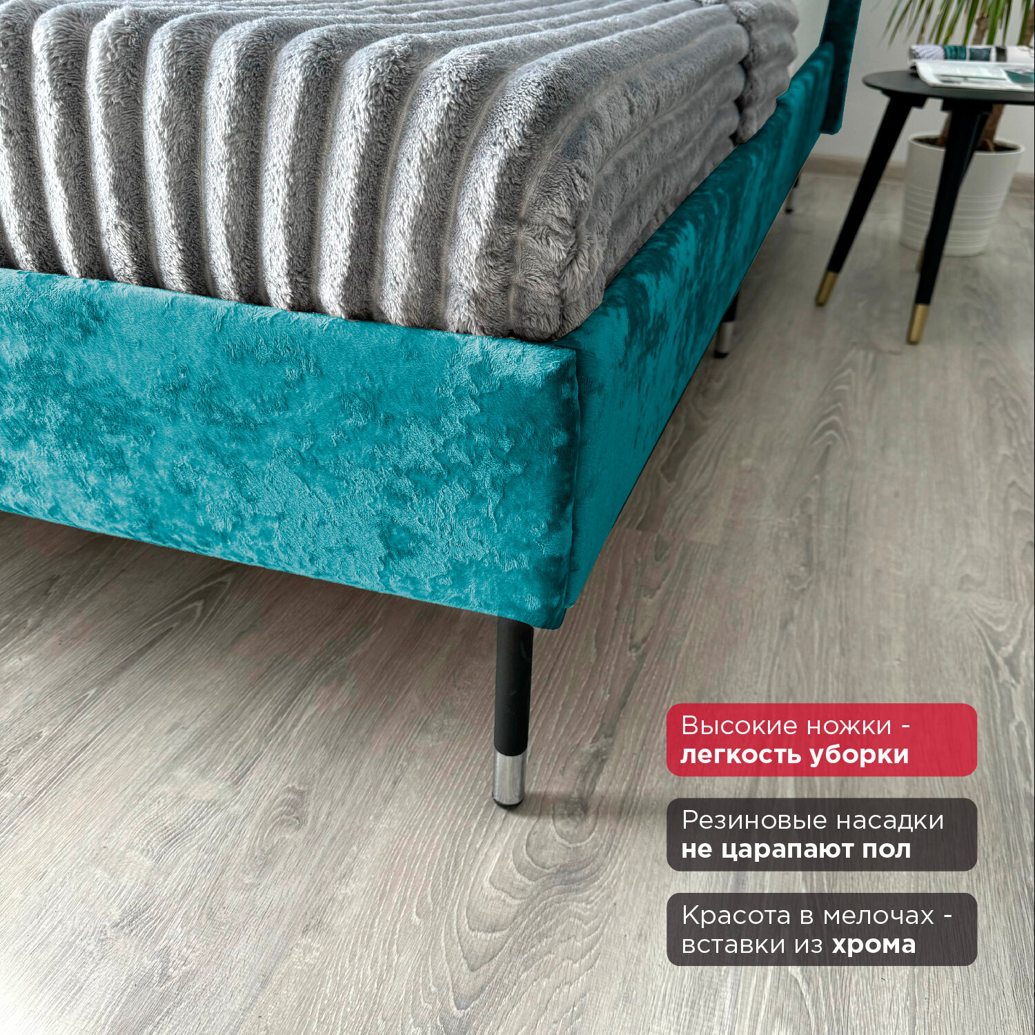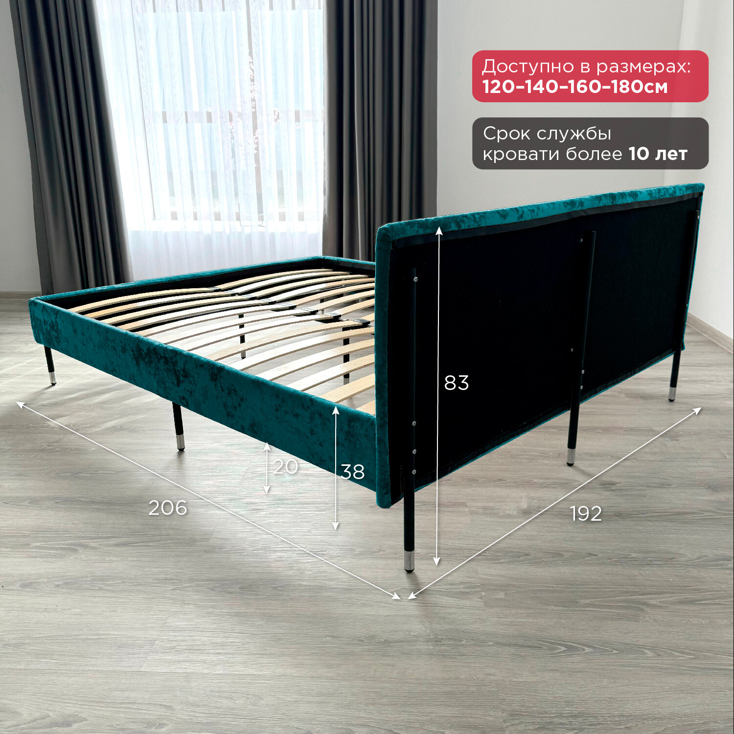 Кровать Redsofa Сити бирюзовый Teddi / ножки хром 160х200 с ортопедическим основанием