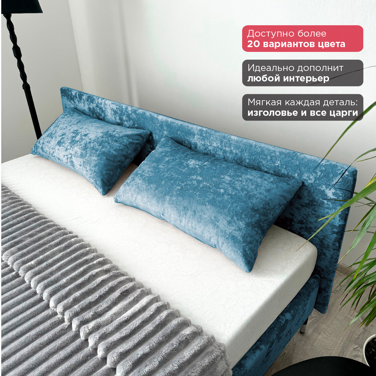 Кровать Redsofa Сити синий Teddi / ножки хром 180х200 с ортопедическим основанием