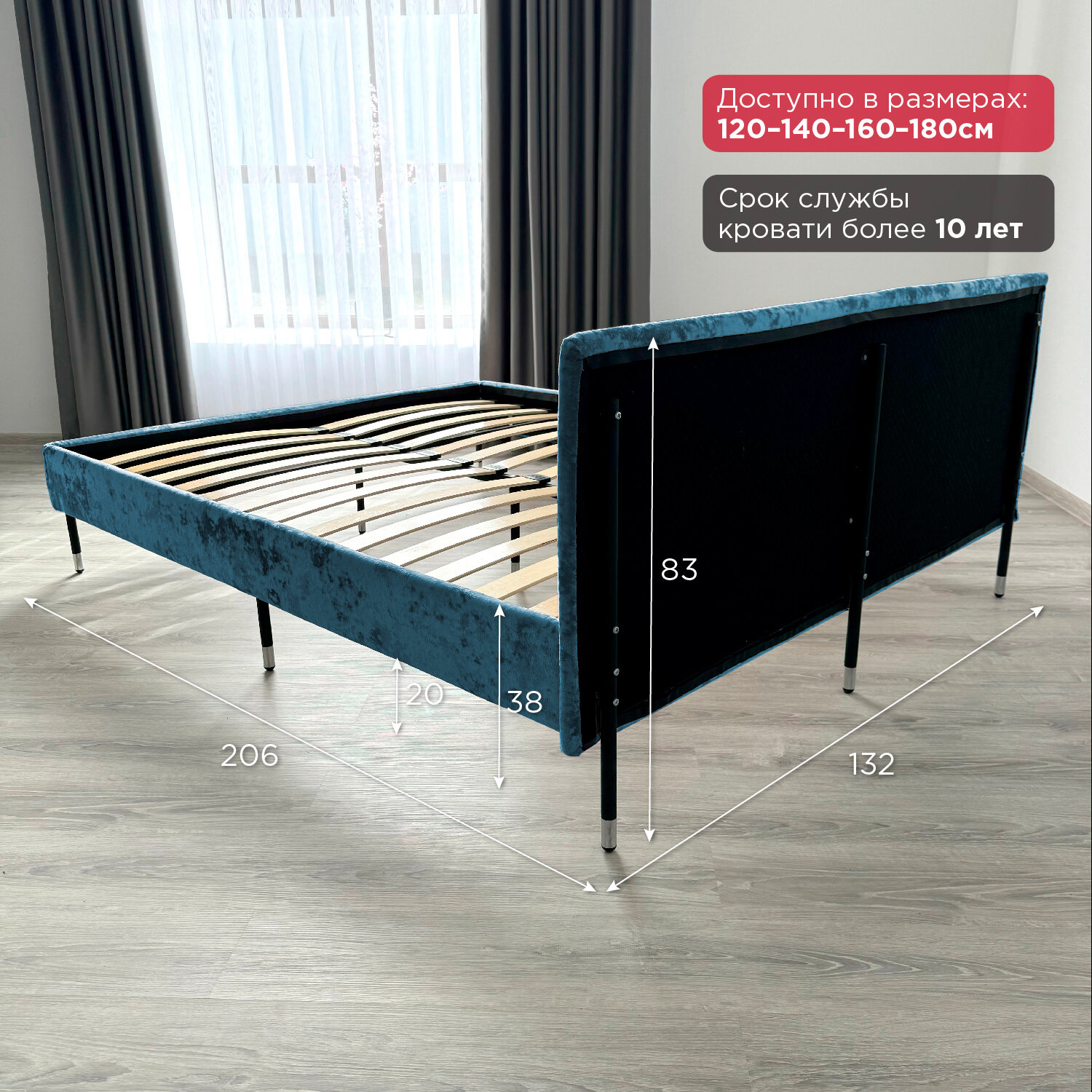 Кровать Redsofa Сити бирюзовый Teddi / ножки хром 140х200 с ортопедическим основанием