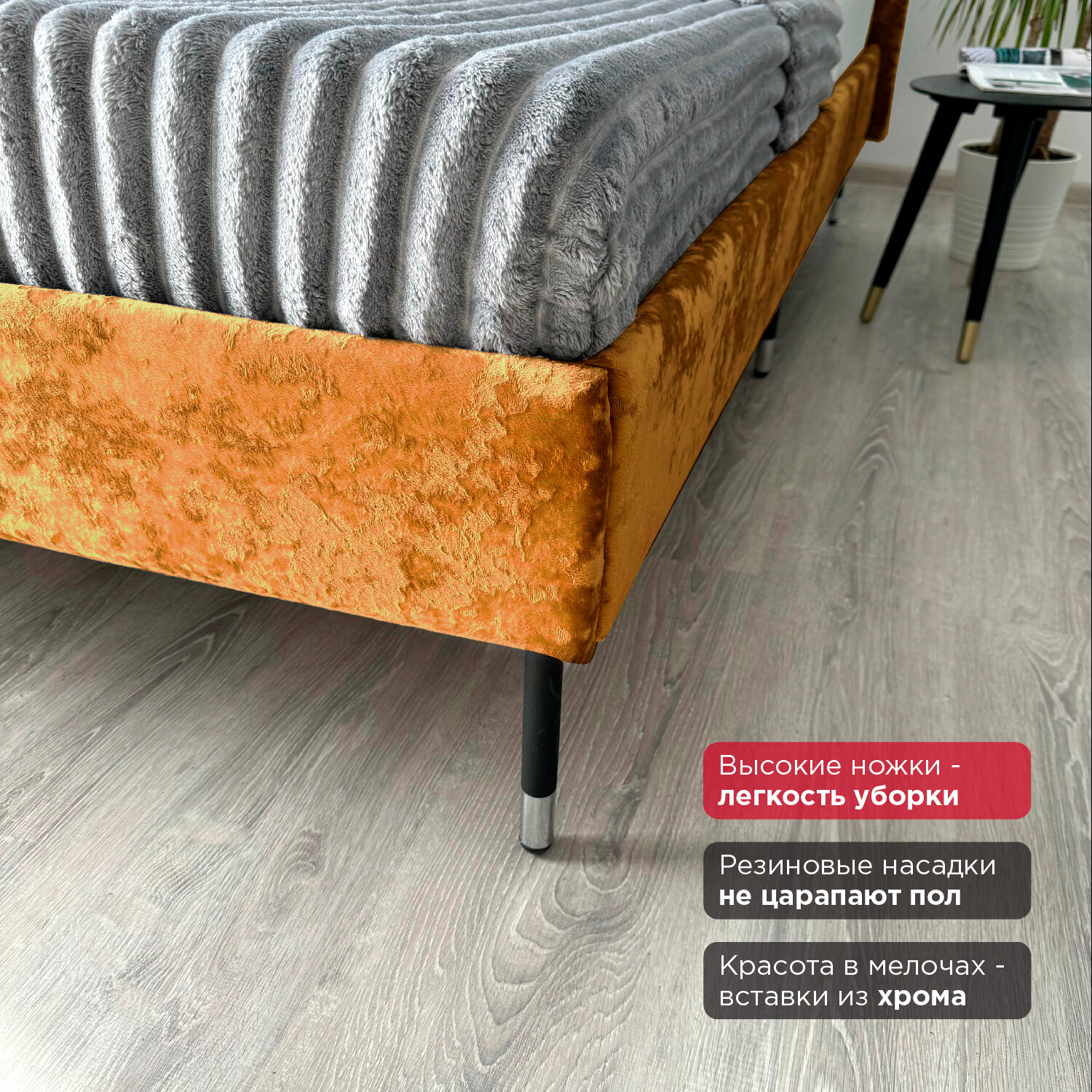 Кровать Redsofa Сити золотой Шайн / ножки хром 160х200 с ортопедическим основанием