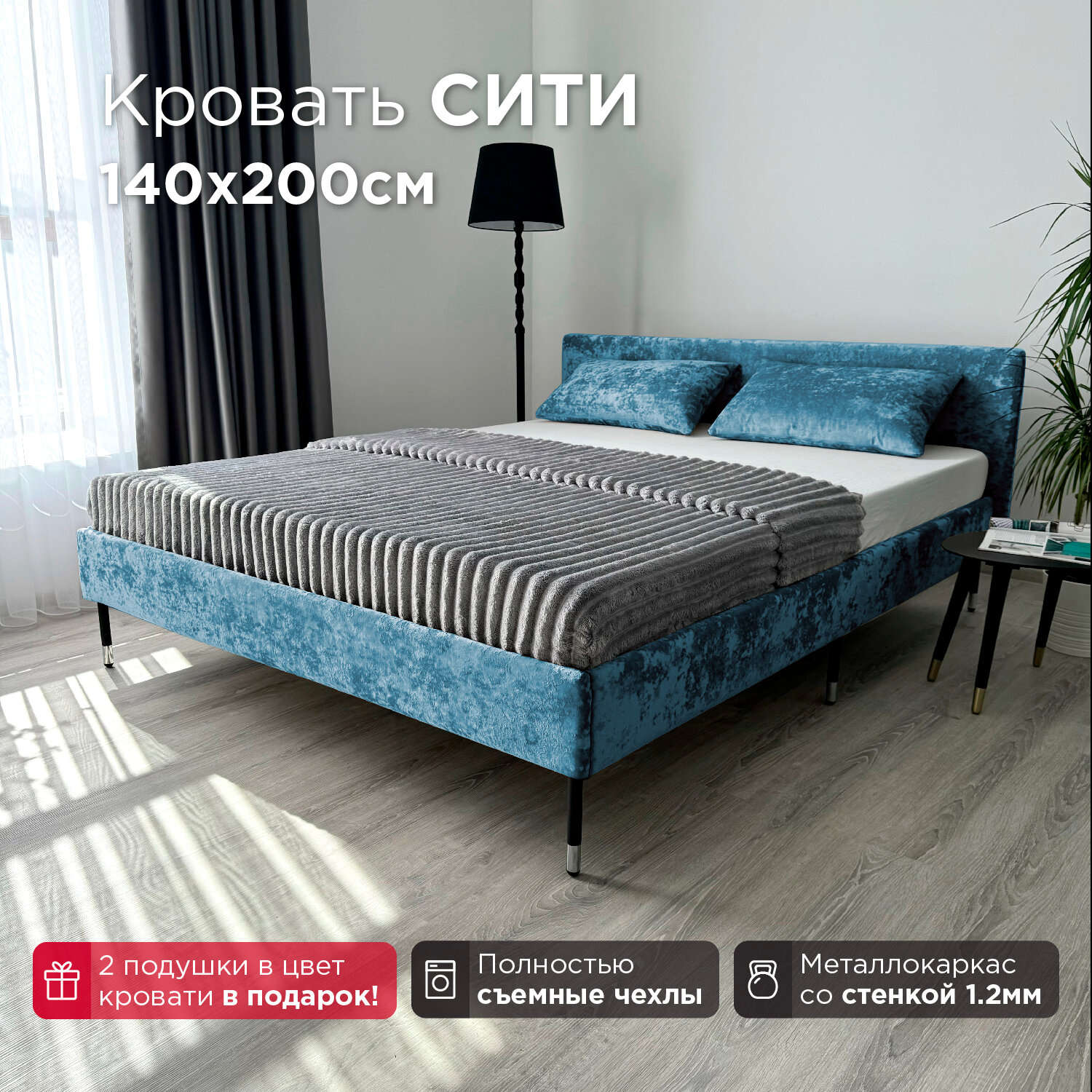 Кровать Redsofa Сити аквамарин Ocean / ножки хром 140х200 с ортопедическим основанием