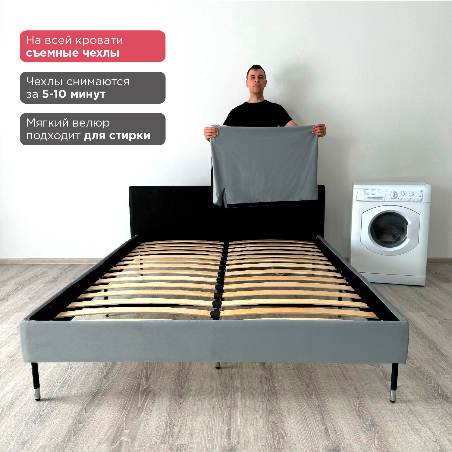 Кровать с матрасом Роза Серая Велюр 160х200